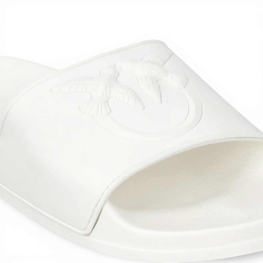 Slipper Pinko aus weißem Gummi, praktisch und mit einem unverwechselbaren Stil. Das Obermaterial ist mit dem kultigen Love Birds-Logo in Relief verziert, das für einen Wiedererkennungswert sorgt. Leicht und bequem, perfekt für die Freizeit und den Sommer. Strapazierfähige Gummisohle für einen sicheren Halt.Unser Kundenservice steht Ihnen von Montag bis Samstag von 10:00 bis 19:30 Uhr zur Verfügung