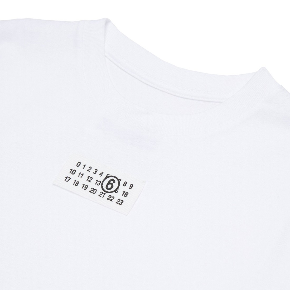 MM6 T-Shirt aus weißer Baumwolle mit einem unverzichtbaren und wiedererkennbaren Design. Der klassische Rundhalsausschnitt und die reguläre Passform garantieren Komfort und Tragekomfort für jeden Tag. Das applizierte Logo auf der Brust ist ein unverwechselbares Detail, während die ikonische Naht auf dem Rücken das Kleidungsstück diskret kennzeichnet. Hergestellt aus 100% Baumwolle, perfekt für einen modernen und vielseitigen Look.