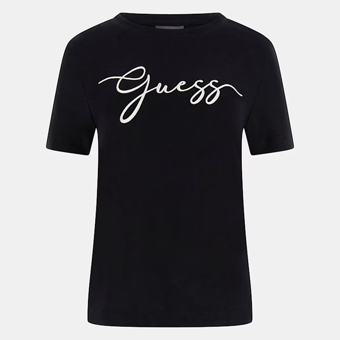 T-Shirt Guess aus 100% Baumwolle, weich und angenehm auf der Haut. Schwarzes Modell mit Rundhalsausschnitt und einer schmalen Passform, die die Silhouette unterstreicht. Auf der Vorderseite befindet sich das gestickte GUESS-Logo, ein unverwechselbares Detail, das dem Kleidungsstück Charakter verleiht. Perfekt für lässige und vielseitige Looks, die zu jeder Gelegenheit mit Jeans oder Sporthosen getragen werden können.Unser Kundenservice steht Ihnen von Montag bis Samstag von 10:00 bis 19:30 Uhr zur Verfügung