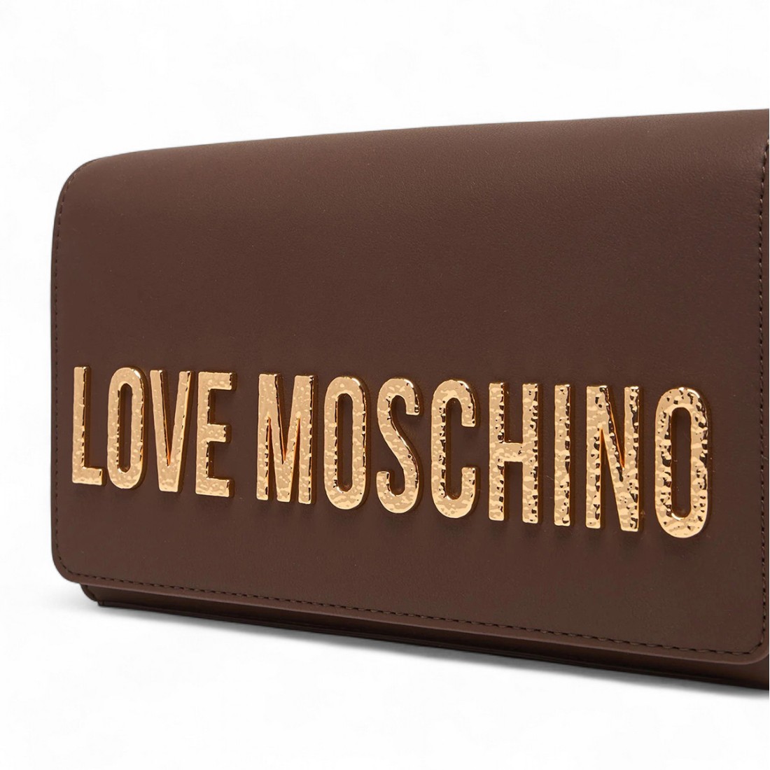 Die elegante und kompakte Umhängetasche von LOVE MOSCHINO in der Farbe Schokolade vereint Stil und Funktionalität. Sie ist aus strapazierfähigem Kunstleder mit gehämmertem Finish gefertigt und verfügt über eine stabile Struktur und einen Überschlag mit Magnetverschluss. Das Innere der Tasche ist mit einem Hauptfach und einem flachen Fach ausgestattet und bietet Platz für die wichtigsten Dinge des Alltags. Fester, 116 cm langer Riemen. Abmessungen: 22 x 14 x 6 cm.