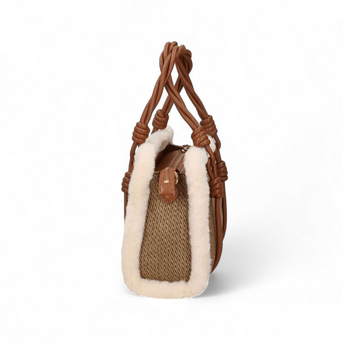 Diese elegante und charakterstarke Handtasche mit Schulterriemen Love Moschino ist aus warmen Materialien wie Kunstpelz oder Kunstleder mit Steppeffekt gefertigt. Das "Love Moschino" Logo in Maxi-Schrift dominiert das Design, während die geflochtenen Kunstledergriffe einen handwerklichen und raffinierten Touch verleihen. Die Tasche eignet sich für jede Gelegenheit und vereint Stil und Zweckmäßigkeit. Höhe 19 cm, Breite 29 cm, Tiefe 10 cm.