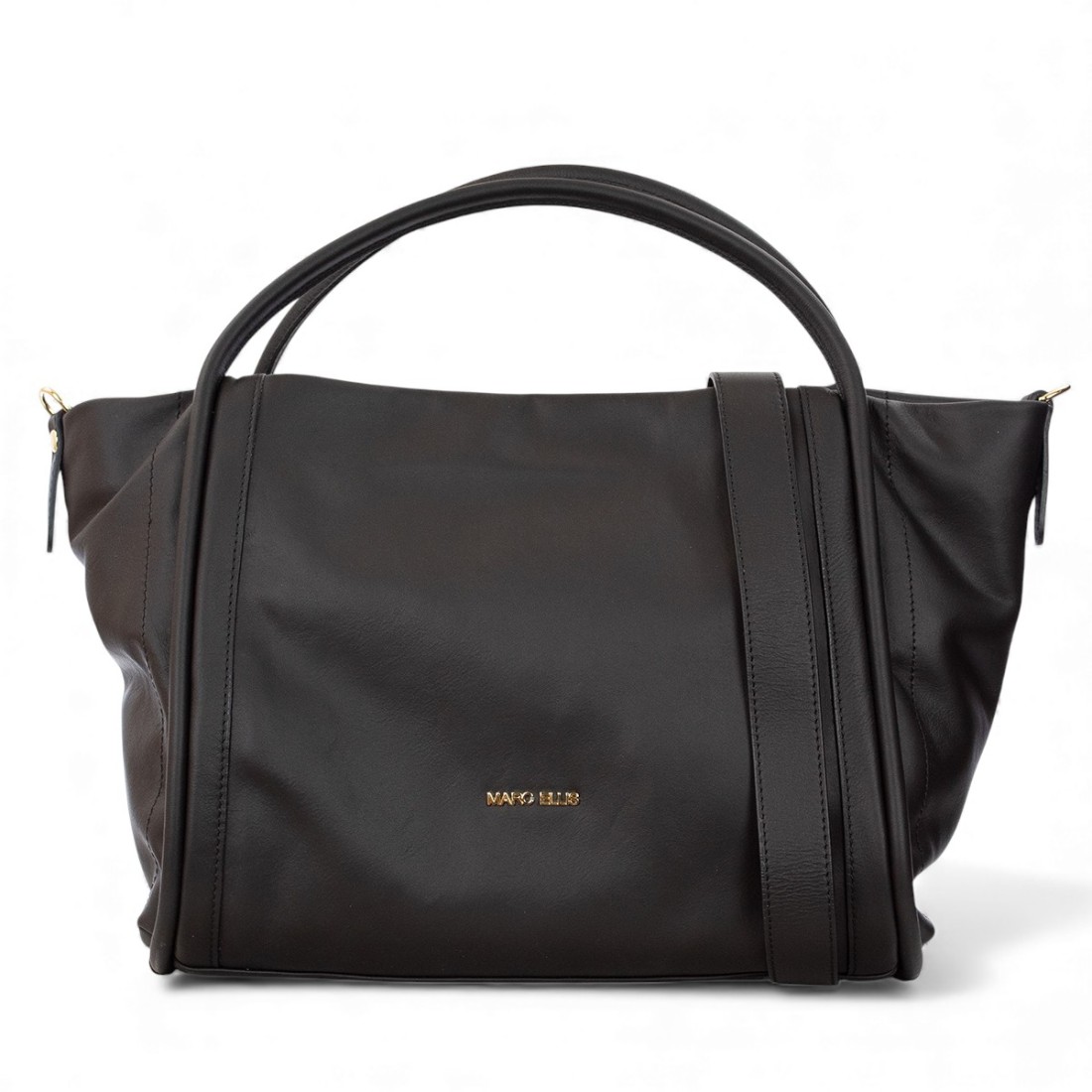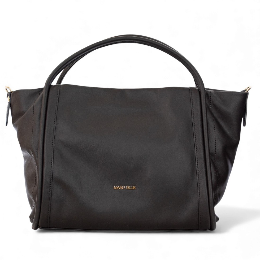 Tasche Marc Ellis aus schwarzem Glattleder mit goldenen Details und Logo-Schriftzug auf der Vorderseite. Ausgestattet mit zwei Ledergriffen und einem Schultergriff, Reißverschluss. Elegant und vielseitig, Maße 36x28x15 cm.Unser Kundenservice steht Ihnen von Montag bis Samstag von 10:00 bis 19:30 Uhr zur Verfügung
