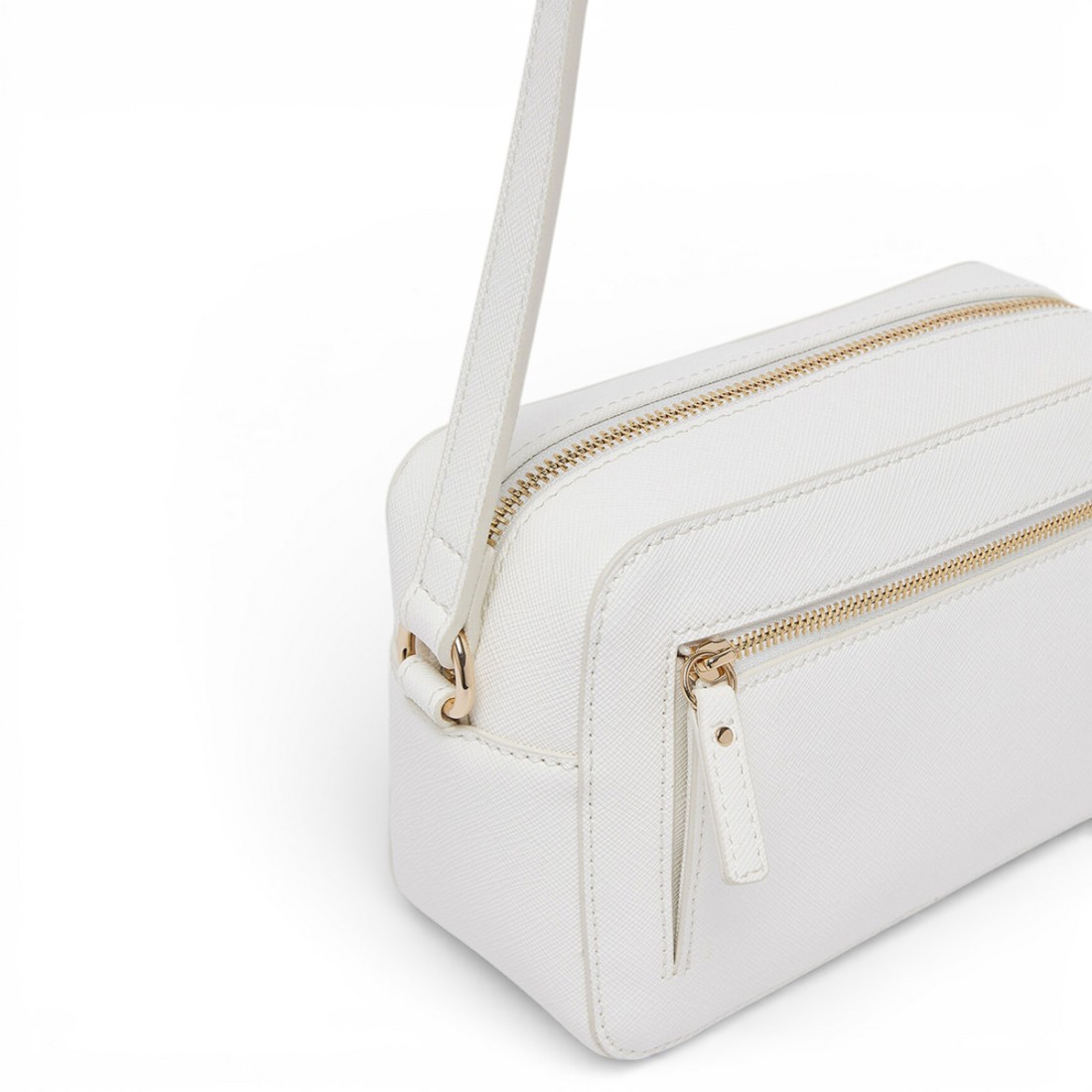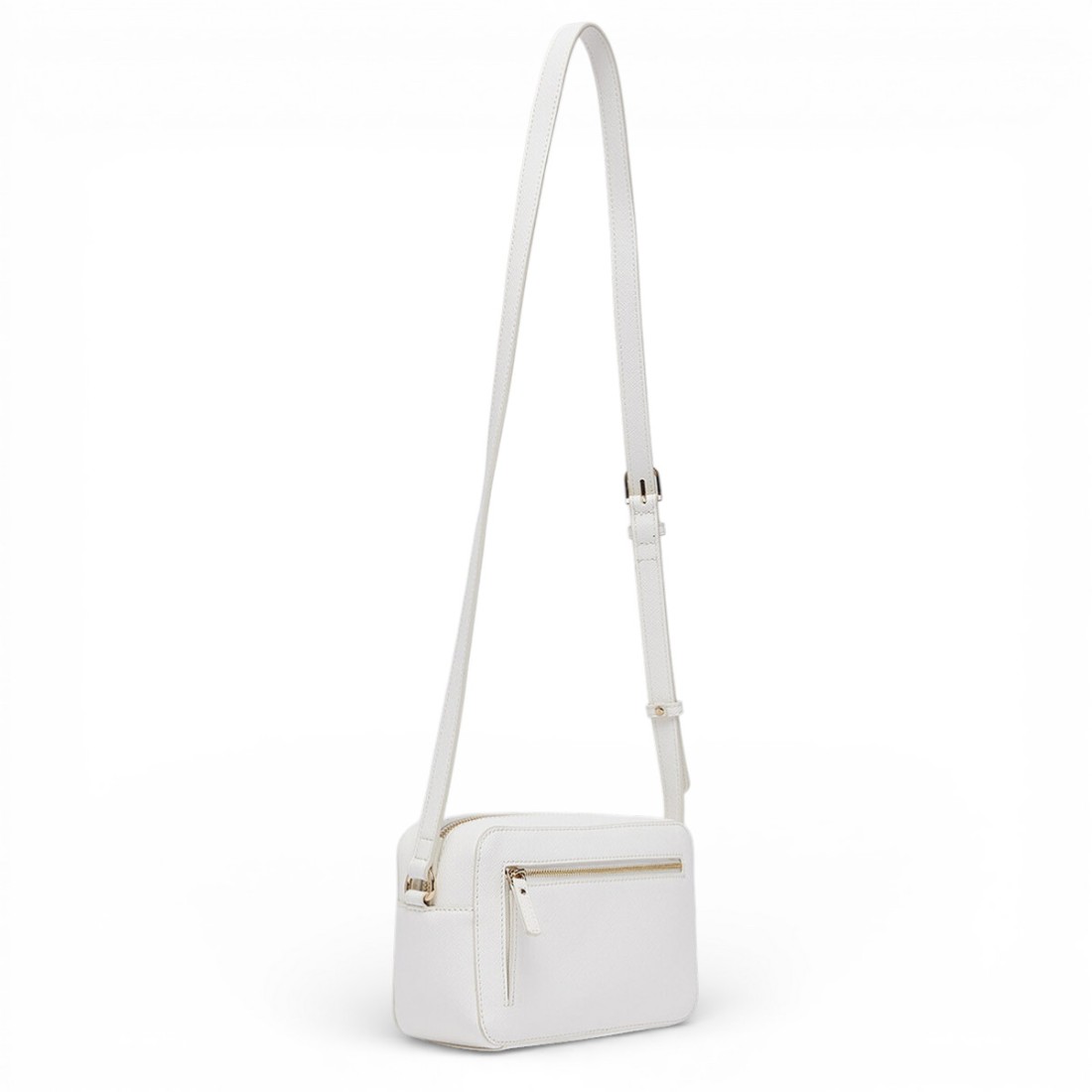 Cremefarbene Umhängetasche aus Kunstleder mit Saffiano-Effekt, kompakt, aber geräumig. Sie verfügt über einen geprägten Schriftzug auf der Vorderseite, einen Hauptverschluss mit Reißverschluss und eine Reißverschlusstasche auf der Rückseite. Der verstellbare Schulterriemen aus Kunstleder garantiert Komfort und Vielseitigkeit und macht die Tasche perfekt für den täglichen Gebrauch oder für einen eleganten und praktischen Look. Maße: 20 x 8 x 13 cm.Unser Kundenservice steht Ihnen von Montag bis Samstag von 10:00 bis 19:30 Uhr zur Verfügung