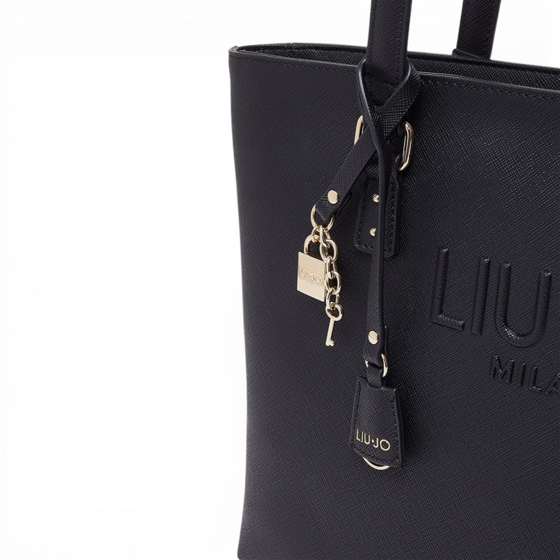 Schwarze Tote Bag aus Kunstleder in Saffianoptik mit elegantem und strukturiertem Design. Das geprägte Logo wertet das Modell auf, während der abnehmbare Logoanhänger ein unverwechselbares Detail darstellt. Ausgestattet mit einem doppelten Griff aus Kunstleder für bequemes Tragen und einem Reißverschluss, der den Inhalt schützt. Perfekt für den täglichen Gebrauch. Maße: 34 x 13 x 27 cm.Unser Kundenservice steht Ihnen von Montag bis Samstag von 10:00 bis 19:30 Uhr zur Verfügung