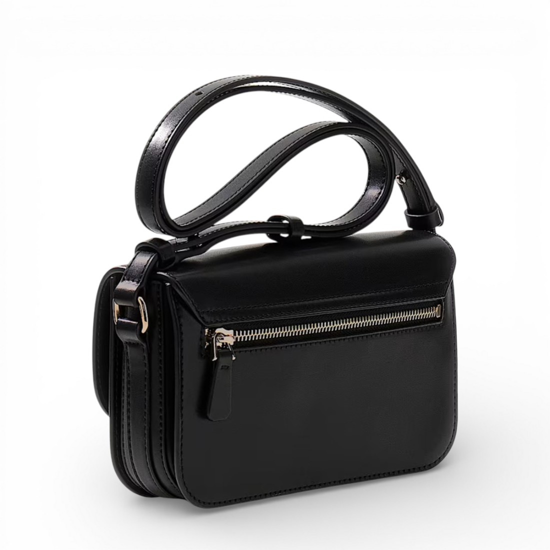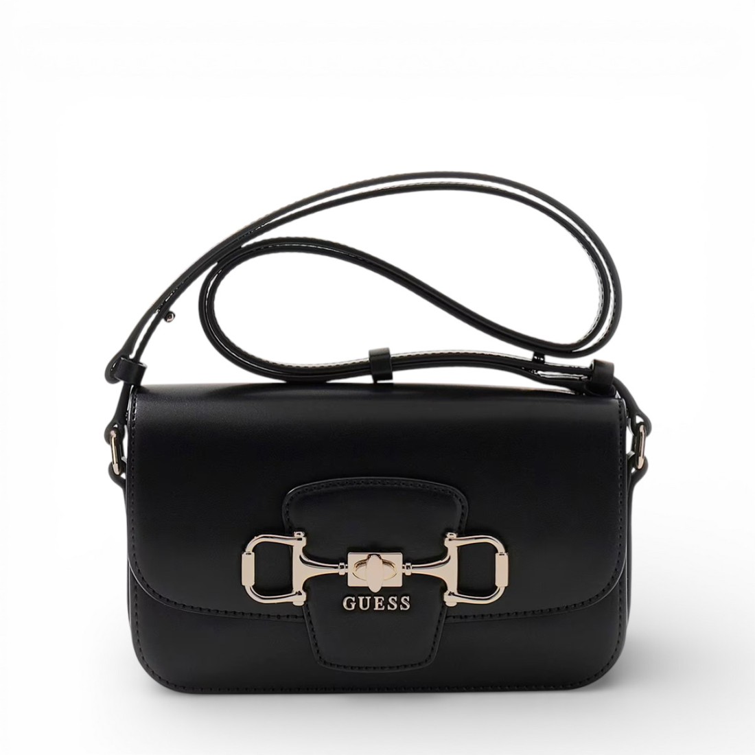 Entdecken Sie die GUESS Janie Schultertasche aus elegantem schwarzem Kunstleder mit Logo-Schriftzug und dekorativem Pferdekopf auf der Vorderseite. Sie ist praktisch und vielseitig und verfügt über einen verstellbaren Schulterriemen, einen Überschlag und doppelte Magnetknöpfe sowie eine praktische Reißverschlusstasche auf der Rückseite. Mit ihren kompakten und dennoch geräumigen Maßen von 21x13x6 cm ist sie perfekt, um jeden Look stilvoll abzurunden.Unser Kundenservice steht Ihnen von Montag bis Samstag von 10:00 bis 19:30 Uhr zur Verfügung