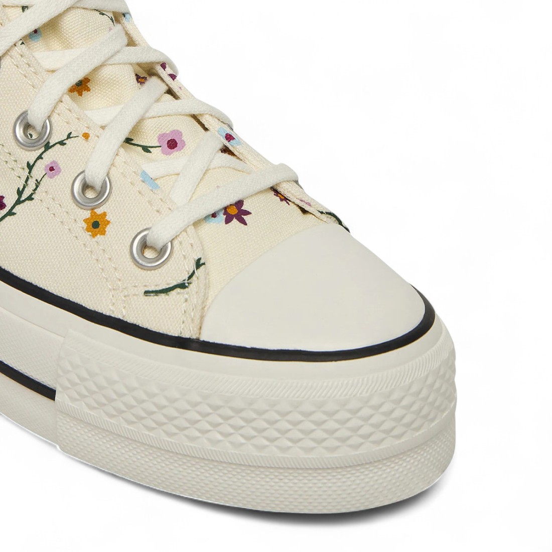 Entdecken Sie die Chuck Plateau-Turnschuhe: leichte, gehobene Turnschuhe, die den klassischen Chuck Taylor-Look mit einem modernen Twist kombinieren. Strapazierfähiges beiges Canvas-Obermaterial, OrthoLite-Dämpfung für maximalen Komfort und ein Plateau, das die Silhouette verschlankt. Die aufgestickte Blumengrafik und der ikonische Knöchelaufnäher vervollständigen einen einzigartigen Stil, der perfekt ist, um bei jeder Gelegenheit aufzufallen.Unser Kundenservice steht Ihnen von Montag bis Samstag von 10:00 bis 19:30 Uhr zur Verfügung