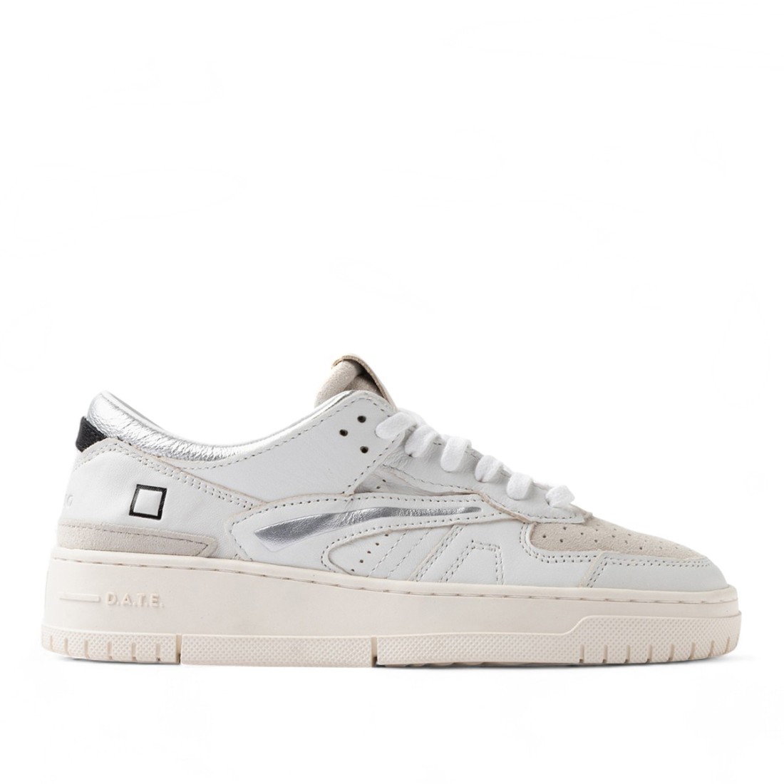 Turnschuhe D.A.T.E. aus laminiertem, silbernem Leder, mit einem modernen und raffinierten Look. Die perforierte Zehenpartie sorgt für Atmungsaktivität, während das Futter aus Leder und Baumwolle den ganzen Tag über für Komfort sorgt. Die 2,5 cm hohe Innensohle sorgt für zusätzlichen Halt. Abgenähte Gummisohle, 2,5-3,5 cm hoch. Unverwechselbare Details: D.A.T.E. Logo auf der Zunge und an der Seite, geprägtes Muster auf der Rückseite. Hergestellt in Italien aus Logic Fondo Crust-Leder, das bei Gebrauch einen exklusiven Abnutzungseffekt aufweist. REGULAR fit.