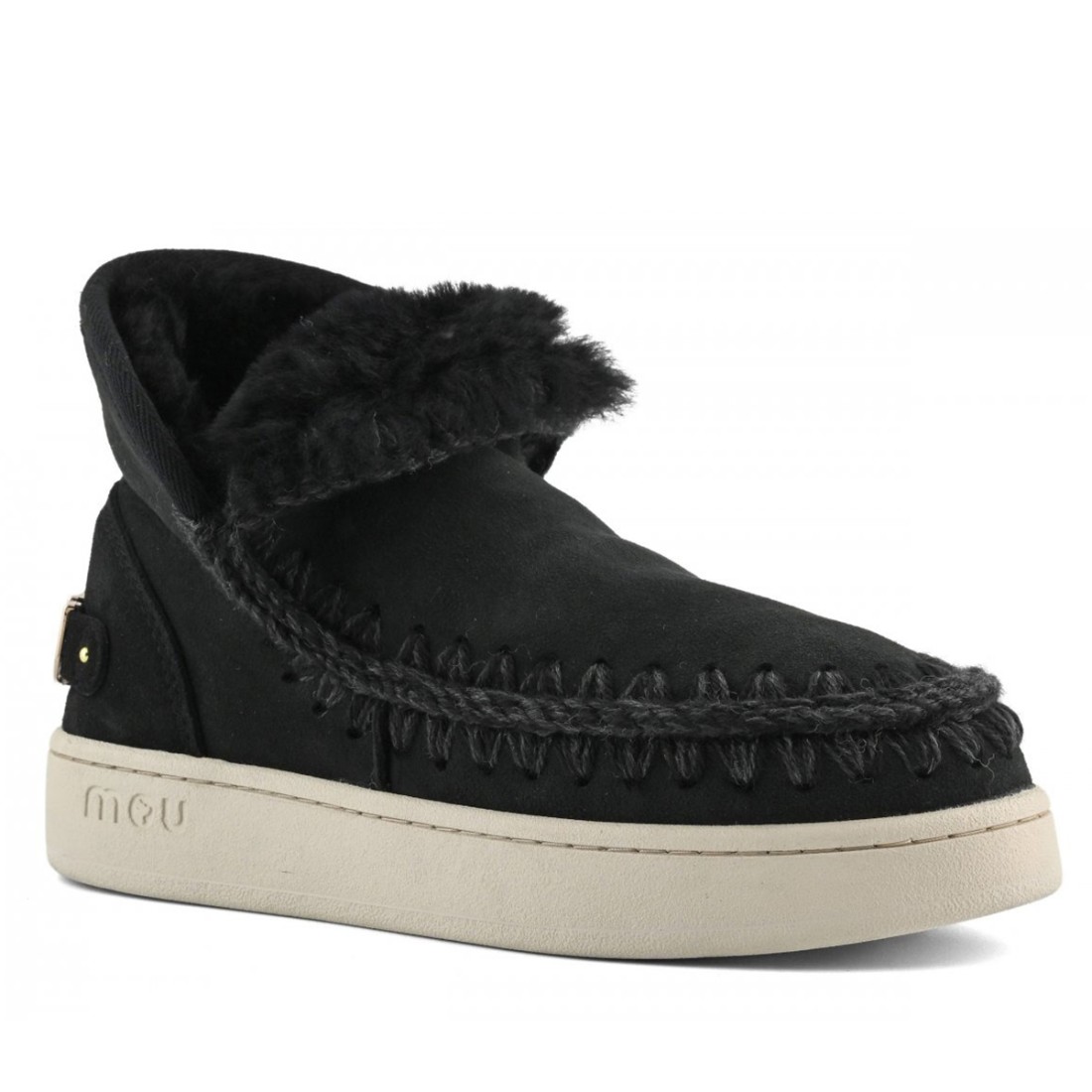 Entdecken Sie den neuen MOU New eskimo Trainer aus schwarzem Wildleder mit Häkelnähten und weichem Schafslederfutter. Ein Mix aus Komfort und handwerklichem Stil, aufgewertet durch den Metallschriftzug auf der Rückseite und eine strapazierfähige Gummisohle, perfekt für einen unverwechselbaren und raffinierten Look für jede Gelegenheit.