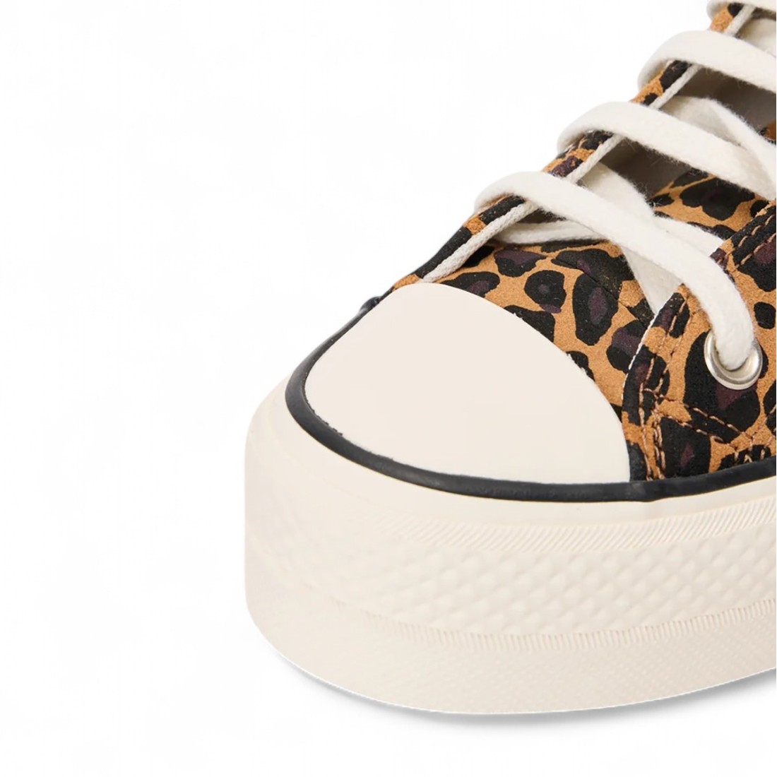 Der Converse Chuck Taylor All Star Lift Platform Leopard Suede vereint Stil und Komfort: Das Obermaterial aus Wildleder sorgt für einen raffinierten Look, während die OrthoLite-Dämpfung einen bequemen Sitz bietet. Der Leopardenprint zieht die Blicke auf sich, ergänzt durch den kultigen Knöchelaufnäher und die All Star-Plakette. Die 1,5-Zoll-Plateausohle verleiht jedem Schritt eine besondere Note.
