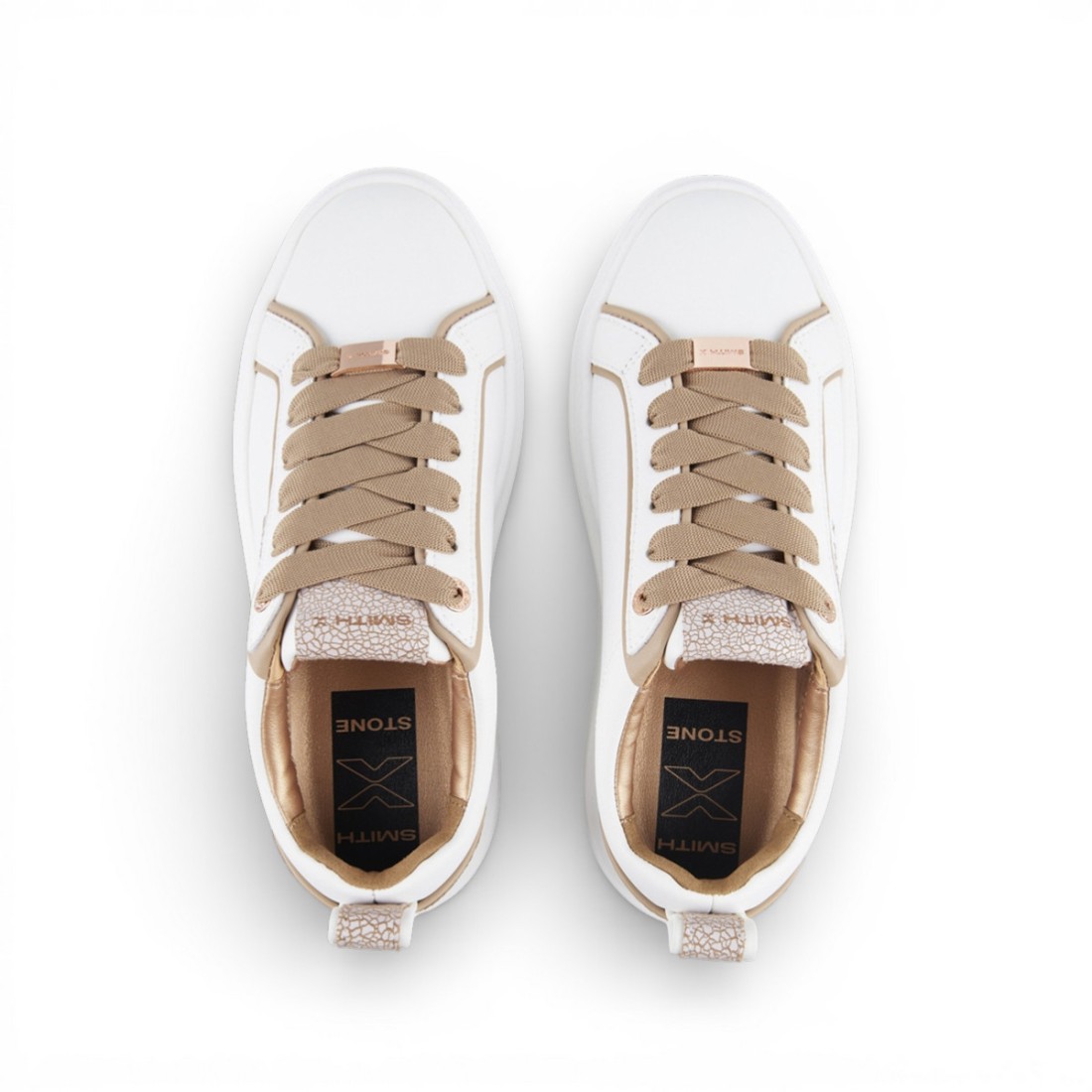 SMITH X - STONE ist ein minimalistischer Turnschuh mit urbanem und zeitgenössischem Charakter, der für einen zeitlosen Stil entworfen wurde. Er ist aus weißem Leder mit einem Einsatz aus beigefarbenem Crackled-Leder auf der Rückseite gefertigt und mit einem Logo an der Seite und an der hinteren Schlaufe versehen. Die 50-mm-Sohle verleiht der Silhouette Schwung, während die 10-mm-Einlegesohle den ganzen Tag über für Komfort sorgt. Ein einfach zu tragendes Modell, perfekt für jede Jahreszeit.Unser Kundenservice steht Ihnen von Montag bis Samstag von 10:00 bis 19:30 Uhr zur Verfügung