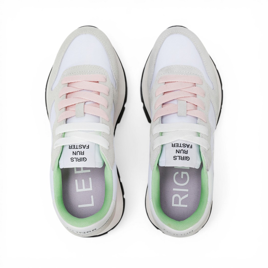 Ally Solid Trainer von SUN68, mit einem lässigen und vielseitigen Stil. Hergestellt aus Nylon und weißem Wildleder, mit weißem Kunstleder auf der Rückseite, das einen besonderen Touch verleiht. Verschluss mit Baumwollschnürsenkeln und gesticktem Logo an der Seite. Atmungsaktives Mikro-Mesh-Futter für maximalen Komfort. Handgefräste EVA-Sohle mit Gummiprofil, leicht und langlebig, ideal für den täglichen Gebrauch.