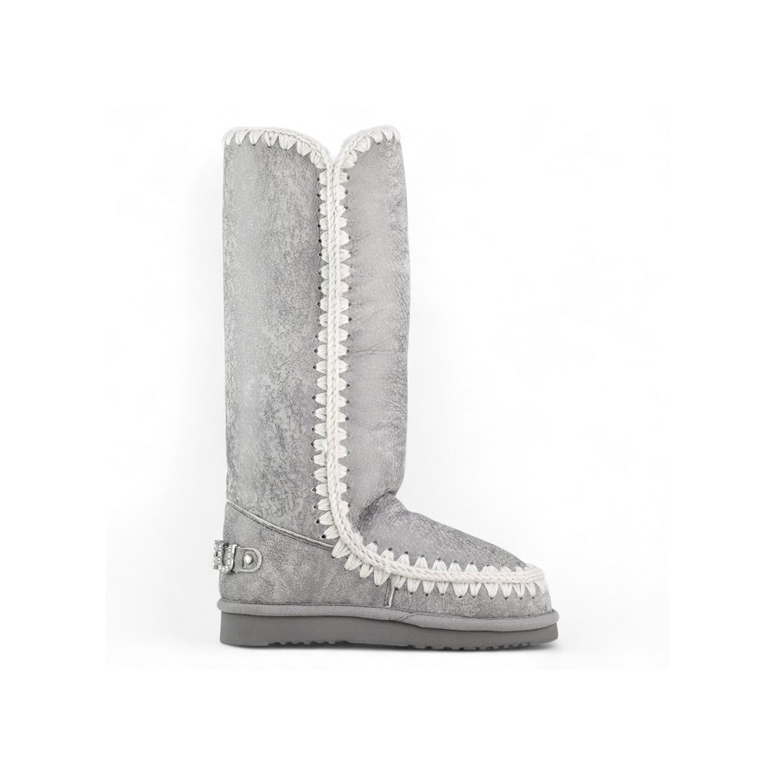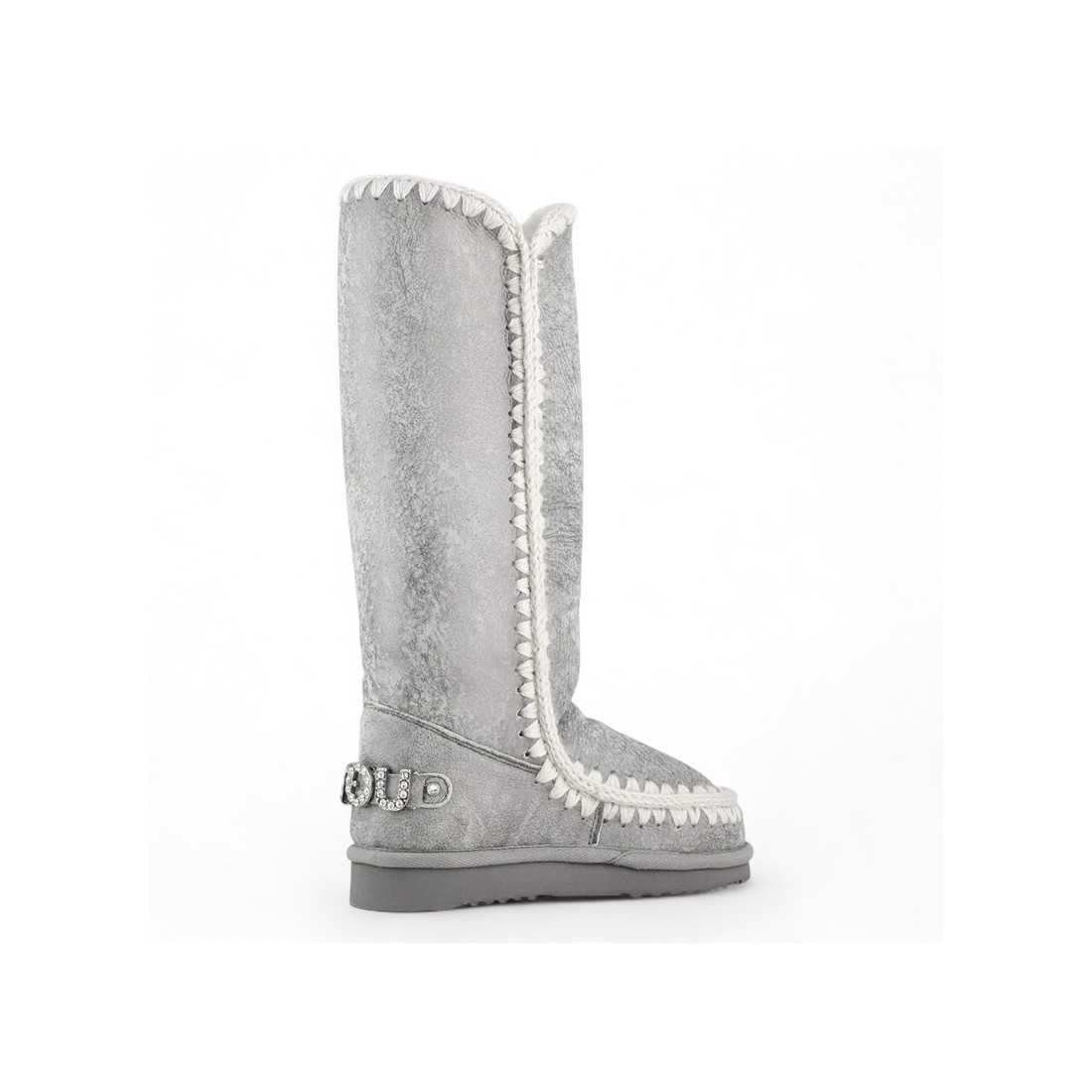MOU-Stiefel Eskimo 40 Rhinestones Logo aus silberfarbenem Leder in Seidenoptik mit Häkelnähten und Mou Metall-Logo mit Strasssteinen auf der Rückseite verziert. Das weiche, doppelseitige Schafslederfutter bietet Komfort und Wärme zu jeder Jahreszeit. Strapazierfähige Gummisohle, perfekt für einen unverwechselbaren und raffinierten Look im Alltag.Unser Kundenservice steht Ihnen von Montag bis Samstag von 10:00 bis 19:30 Uhr zur Verfügung