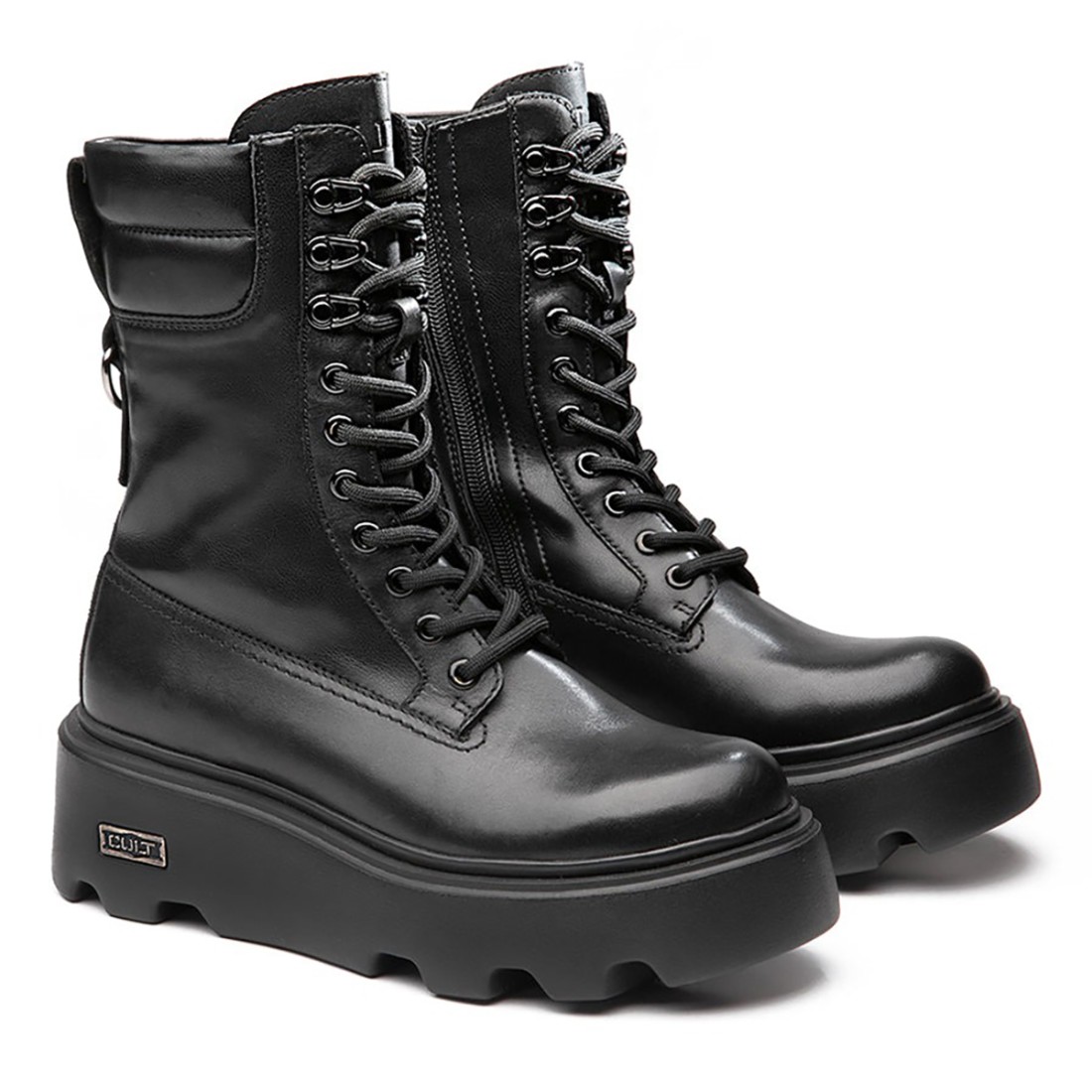 Kampfstiefel schnürschuh für die mittlere Wade, der Leder und Stretch-Leder für eine gute Passform kombiniert. Die skulpturale Silhouette ruht auf einem klobigen, gerändelten Boden, der Halt und Stabilität garantiert. Metallic-Details und das CULT-Logo auf der Seitenplatte sorgen für einen Glam-Rock-Touch, für alle, die mit Stil und Persönlichkeit auffallen wollen.Unser Kundenservice steht Ihnen von Montag bis Samstag von 10:00 bis 19:30 Uhr zur Verfügung