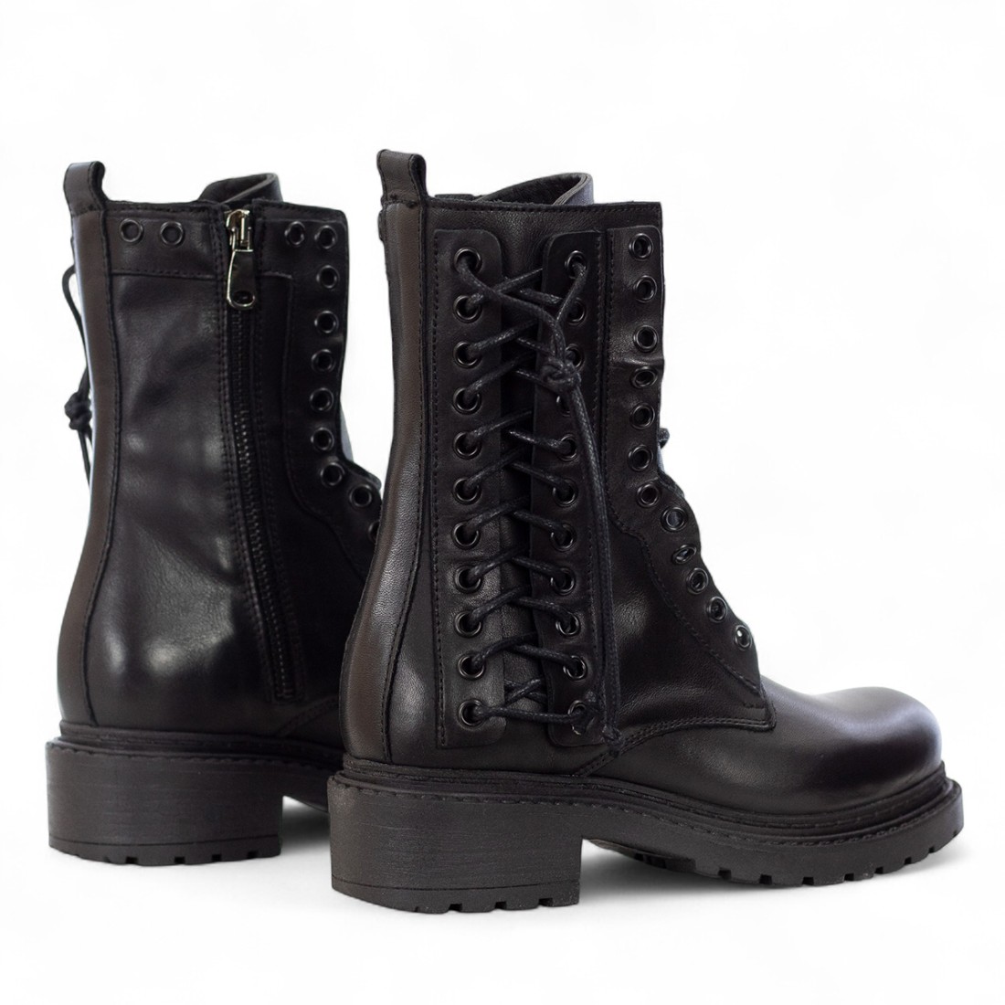 Kampfstiefel Metisse schwarzes Leder mit modernem Design, 40 mm Boden und praktischem Seitenreißverschluss. Futter und Innensohle aus Leder und Lederimitat für Komfort und Atmungsaktivität, Gummisohle für Stabilität. Ideal für einen schicken und vielseitigen Look für jede Gelegenheit.