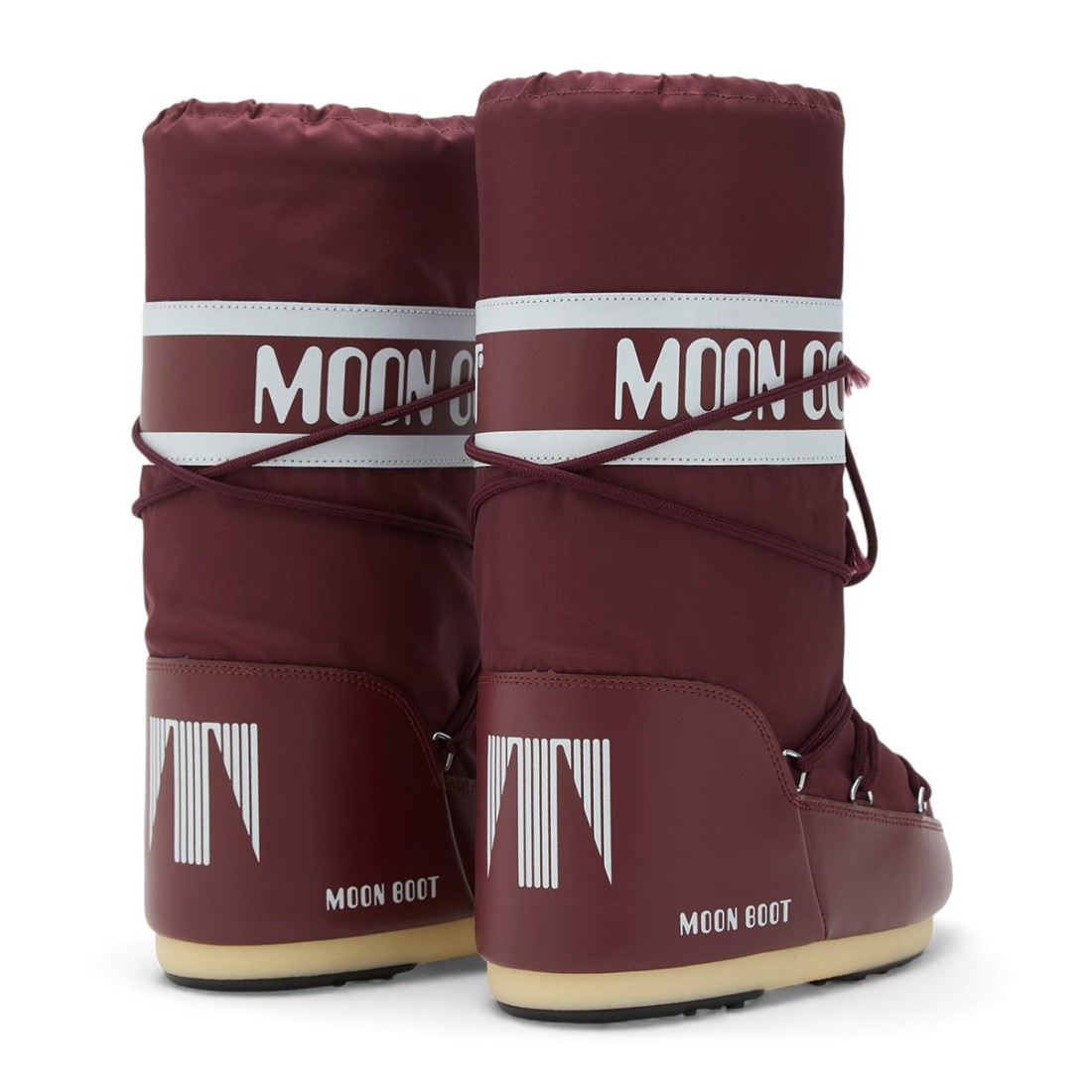 Der Moon Boot Icon in burgunderfarbenem Nylon feiert die Mondlandung von 1969 mit zeitlosem Stil und zuverlässiger Leistung. Er ist beidhändig, geschlechtsneutral und in mehreren Größen erhältlich. Er ist zu 100 % wasserabweisend und hat eine isolierende Polsterung, die den Fuß warm und trocken hält. Eine rutschfeste Gummisohle, eine TR-Zwischensohle, schlauchförmige Schnürsenkel mit verstellbarem Kordelzug und PVC-Details mit silbernen Metallösen vervollständigen eine Ikone, die für jedes Klima geeignet ist.Unser Kundenservice steht Ihnen von Montag bis Samstag von 10:00 bis 19:30 Uhr zur Verfügung