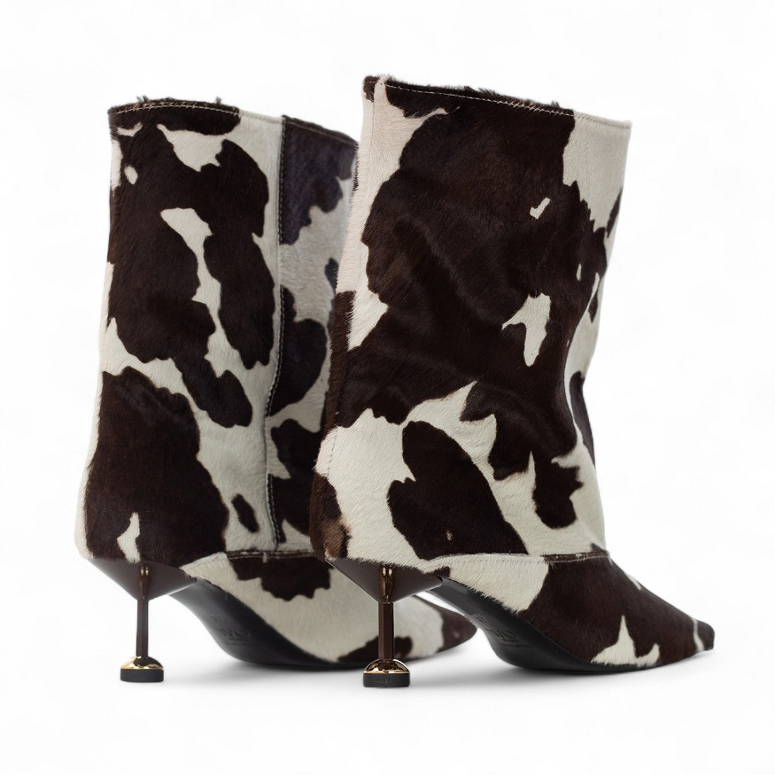 Elegante WO Milano Stiefelette aus braunem und weißem Ponyfell, mit einem 60 mm hohen Absatz und einer Gummisohle für Komfort und Stabilität. Das Lederfutter und die Innensohle aus Leder garantieren Qualität und Langlebigkeit, perfekt für die Vervollständigung von anspruchsvollen und unverwechselbaren Looks.Unser Kundenservice steht Ihnen von Montag bis Samstag von 10:00 bis 19:30 Uhr zur Verfügung