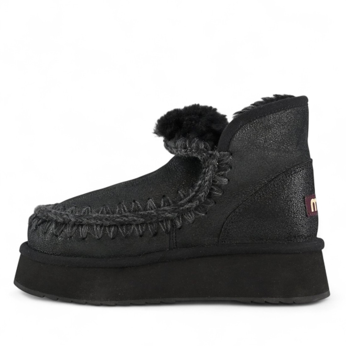 Entdecken Sie die Mou Stiefelette aus schwarzem Rissleder mit Häkelnähten und weichem Schafslederfutter. Das Mou -Logo auf der Rückseite verleiht einen unverwechselbaren Touch, während die 50-mm-Plateausohle aus Gummi für Komfort und Stil bei jedem Schritt sorgt. Perfekt für urbane und raffinierte Looks.Unser Kundenservice steht Ihnen von Montag bis Samstag von 10:00 bis 19:30 Uhr zur Verfügung