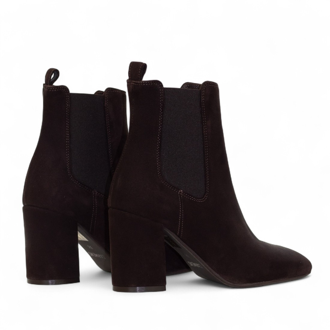 Die Stiefelette CARMENS PADOVA aus weichem braunen Veloursleder vereint Eleganz und Komfort. Das Futter aus Leder und Stoff sorgt für ein angenehmes Tragegefühl, während die Gummisohle Stabilität garantiert. Das elastische Detail an der Seite setzt einen modernen Akzent. Mit einem 85-mm-Absatz ist sie die ideale Wahl für einen raffinierten und bequemen Look, perfekt für Arbeit und Freizeit.Unser Kundenservice steht Ihnen von Montag bis Samstag von 10:00 bis 19:30 Uhr zur Verfügung
