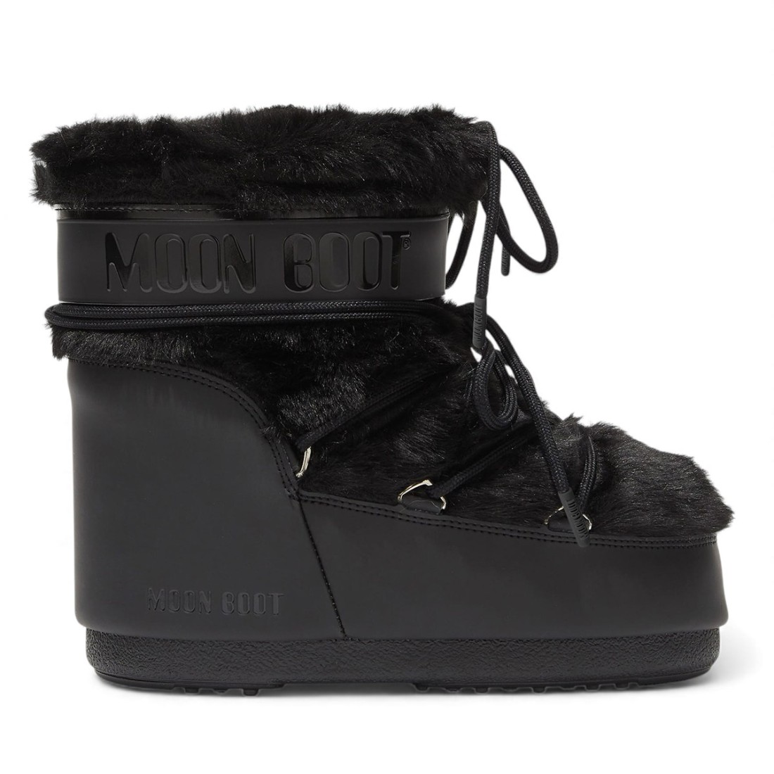 Entdecken Sie den Black Icon Low aus Kunstfell, die perfekte Mischung aus Stil und Komfort von Moon Boot. Geschlechtsneutrales Design, inspiriert von der Mondlandung 1969, mit rutschfester Sohle und isolierender Polsterung für Schutz und Wärme bei jedem Klima. er ist 100% wasserabweisend und verfügt über hochwertige Details: Logoband, PVC-Besatz, silberne Ösen und gekreuzte Schnürsenkel. Ideal, um dem Winter mit Stil und Funktionalität zu begegnen.Unser Kundenservice steht Ihnen von Montag bis Samstag von 10:00 bis 19:30 Uhr zur Verfügung
