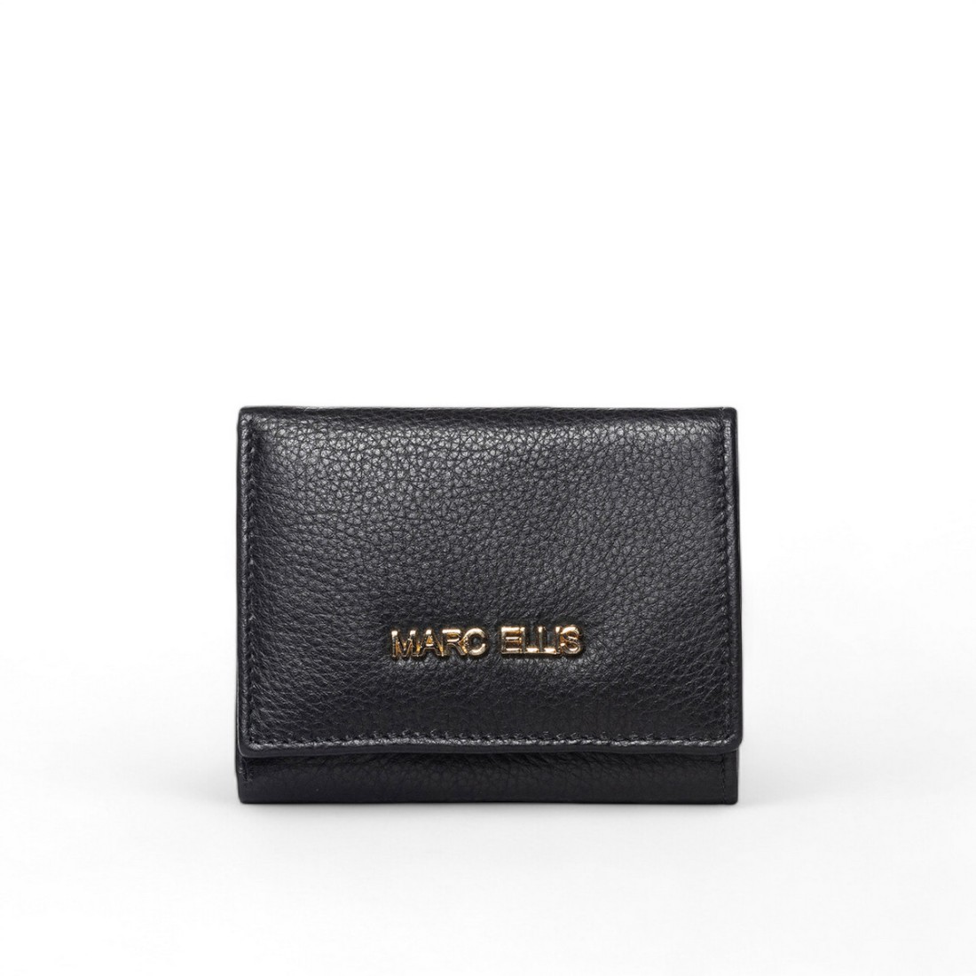 Elegantes Mini-Portemonnaie Marc Ellis aus schwarzem Leder, verziert mit einem Metall-Logo auf der Vorderseite. Sie ist kompakt und raffiniert und bietet ein Fach für Banknoten, Kartenfächer und ein Münzfach mit Reißverschluss auf der Rückseite. Trifold-Design mit Druckknopf, ideal für alle, die es praktisch und stilvoll mögen, ohne auf einen Hauch von Klasse zu verzichten. Integrierter RFID-Schutz. Maße: 10,5x9x3 cm.Unser Kundenservice steht Ihnen von Montag bis Samstag von 10:00 bis 19:30 Uhr zur Verfügung