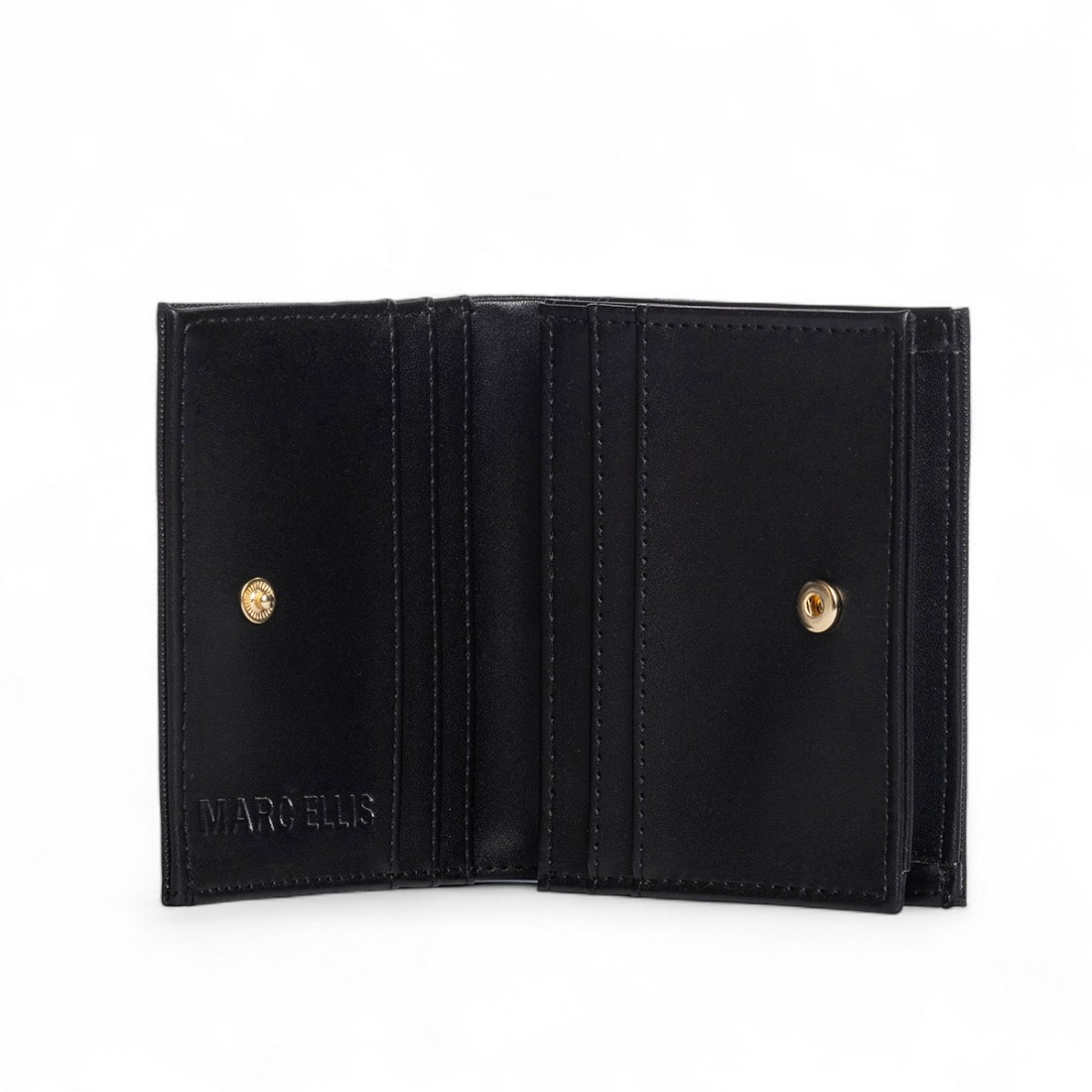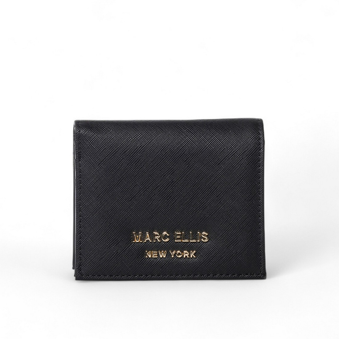 Elegantes Mini-Portemonnaie Marc Ellis aus schwarzem Kunstleder in Saffiano-Optik, verziert mit einem Metall-Logo-Schriftzug auf der Vorderseite. Kompakt und funktional, mit einem Fach für Banknoten, einem Münzfach und 5 Kartenfächern. Mit den Maßen 11x9x3 cm ist sie ideal für alle, die Stil und Funktionalität für jede Gelegenheit suchen.Unser Kundenservice steht Ihnen von Montag bis Samstag von 10:00 bis 19:30 Uhr zur Verfügung