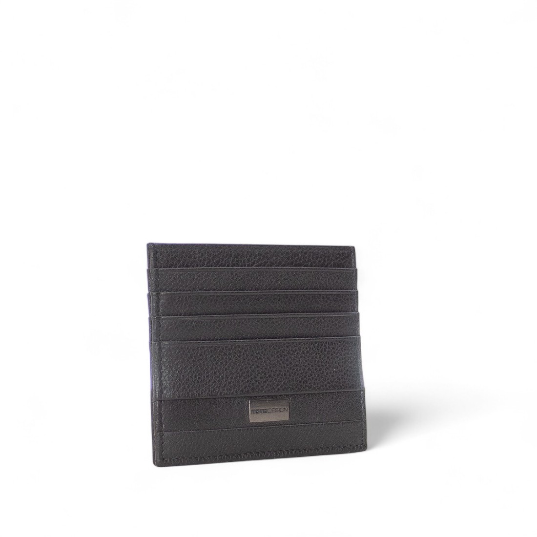 Das Kartenetui von Momodesign aus schwarzem genarbtem Leder ist elegant und kompakt. Auf der Vorderseite sticht die Logoplakette hervor, während im Inneren die 8 Fächer sicheren Platz für wichtige Karten bieten. Klare Linien und ein schwarzes Finish machen es für jede Gelegenheit geeignet. Abmessungen: 10 x 8 x 1 cm.