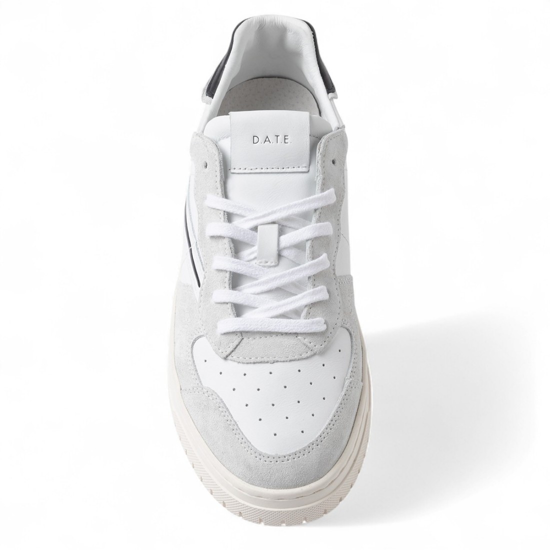Trainer D.A.T.E. Turnier mit einem modernen Design und tadellosem Komfort. Die perforierte Zehenpartie sorgt für maximale Atmungsaktivität, während die Baumwollschnürsenkel und das geprägte seitliche Logo für einen unverwechselbaren Touch sorgen. Hinterer Absatz aus weißem Leder, Lederfutter und Baumwollfrottee für ein angenehmes Tragegefühl. Erhöhte Innensohle 2,5 cm und genähte Gummisohle 2,5-4 cm hoch. Feine Materialien und Verarbeitung Made in Italy. Normale Passform.