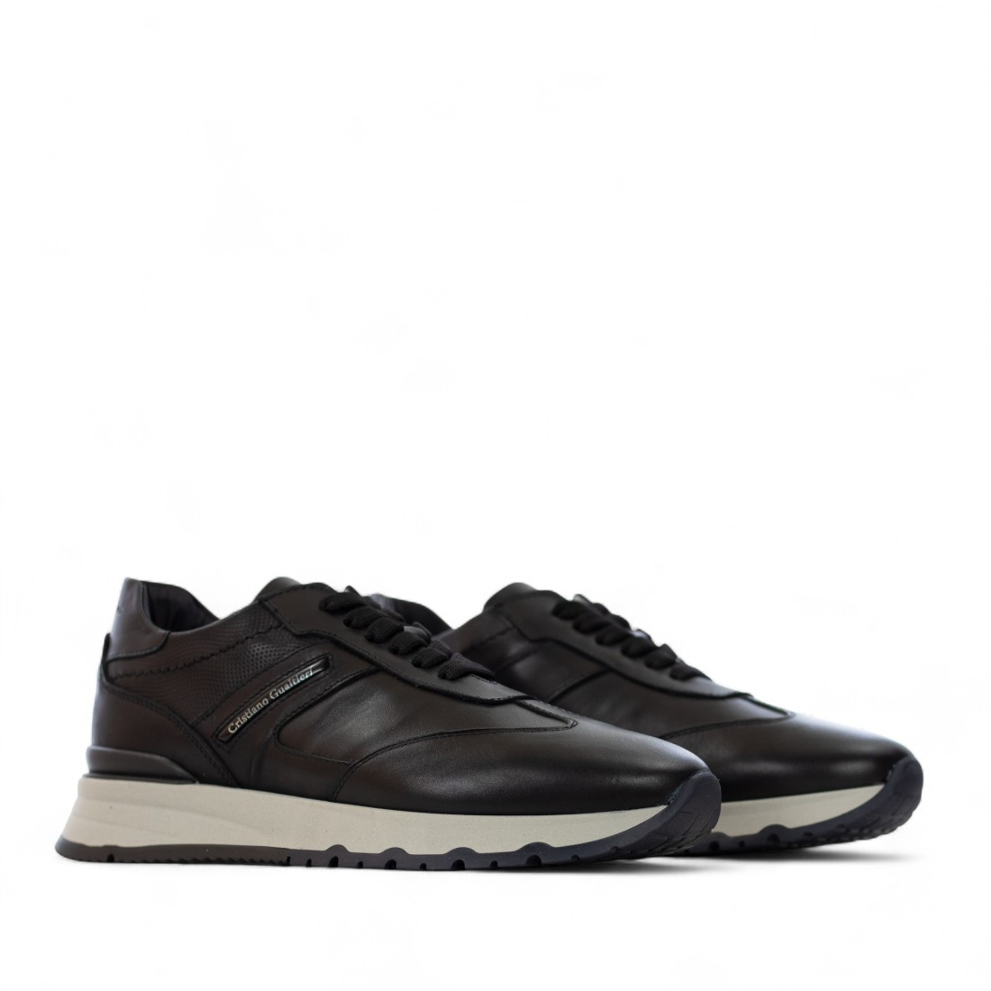 Herrenturnschuhe von Cristiano Gualtieri, aus hochwertigem Leder. Das Lederfutter und die Innensohle garantieren Komfort und Atmungsaktivität, während die Gummisohle für Grip und Haltbarkeit sorgt. Elegantes Design in Schwarz, perfekt für einen raffinierten Freizeitstil. Authentisches Made in Italy, Synonym für Handwerkskunst und Liebe zum Detail.Unser Kundenservice steht Ihnen von Montag bis Samstag von 10:00 bis 19:30 Uhr zur Verfügung