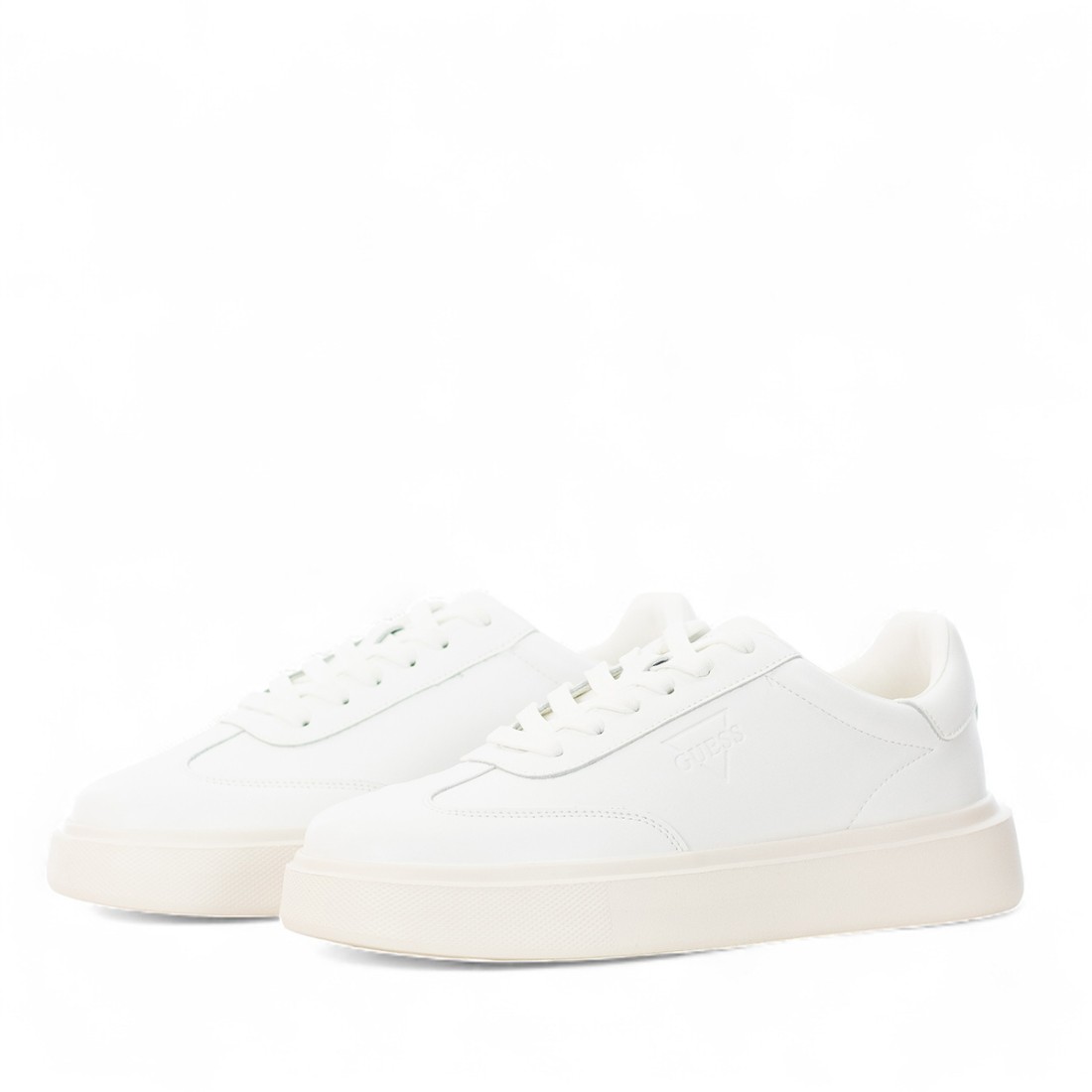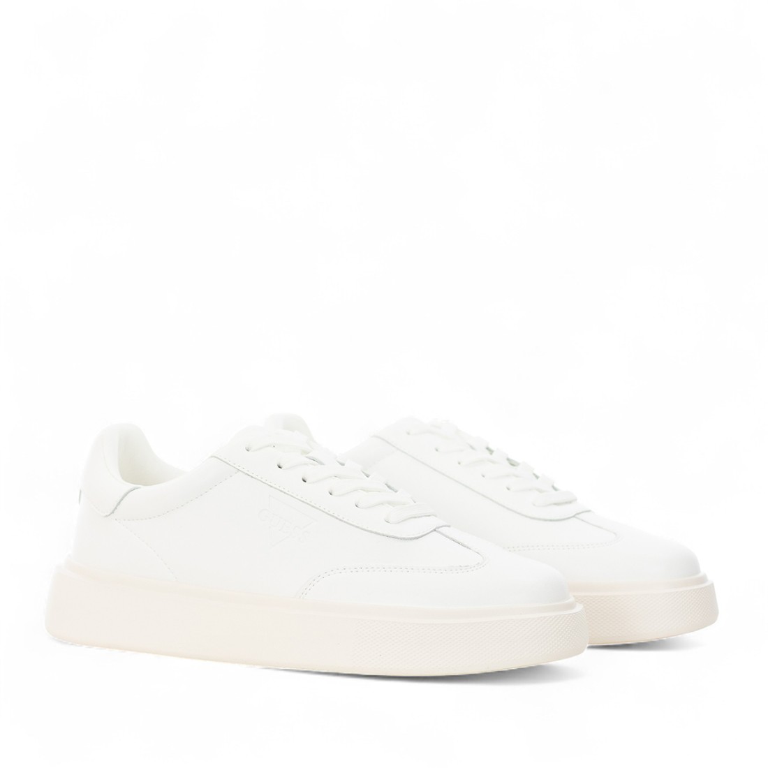 Herren-Turnschuhe Guess aus weißem Leder und Lederimitat, mit Innenfutter und Innensohle aus Stoff für optimalen Komfort. Die 40 mm hohe Gummisohle garantiert Stabilität und Stil, während das geprägte Logo auf dem Obermaterial einen unverwechselbaren Akzent setzt. Perfekt für einen lässigen, aber gepflegten Look, geeignet für jede Gelegenheit.