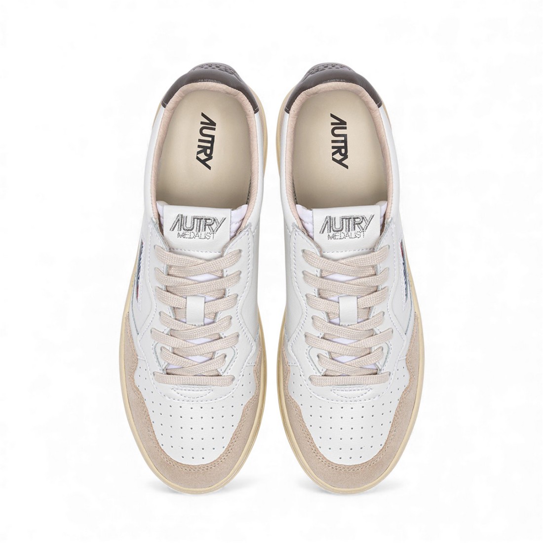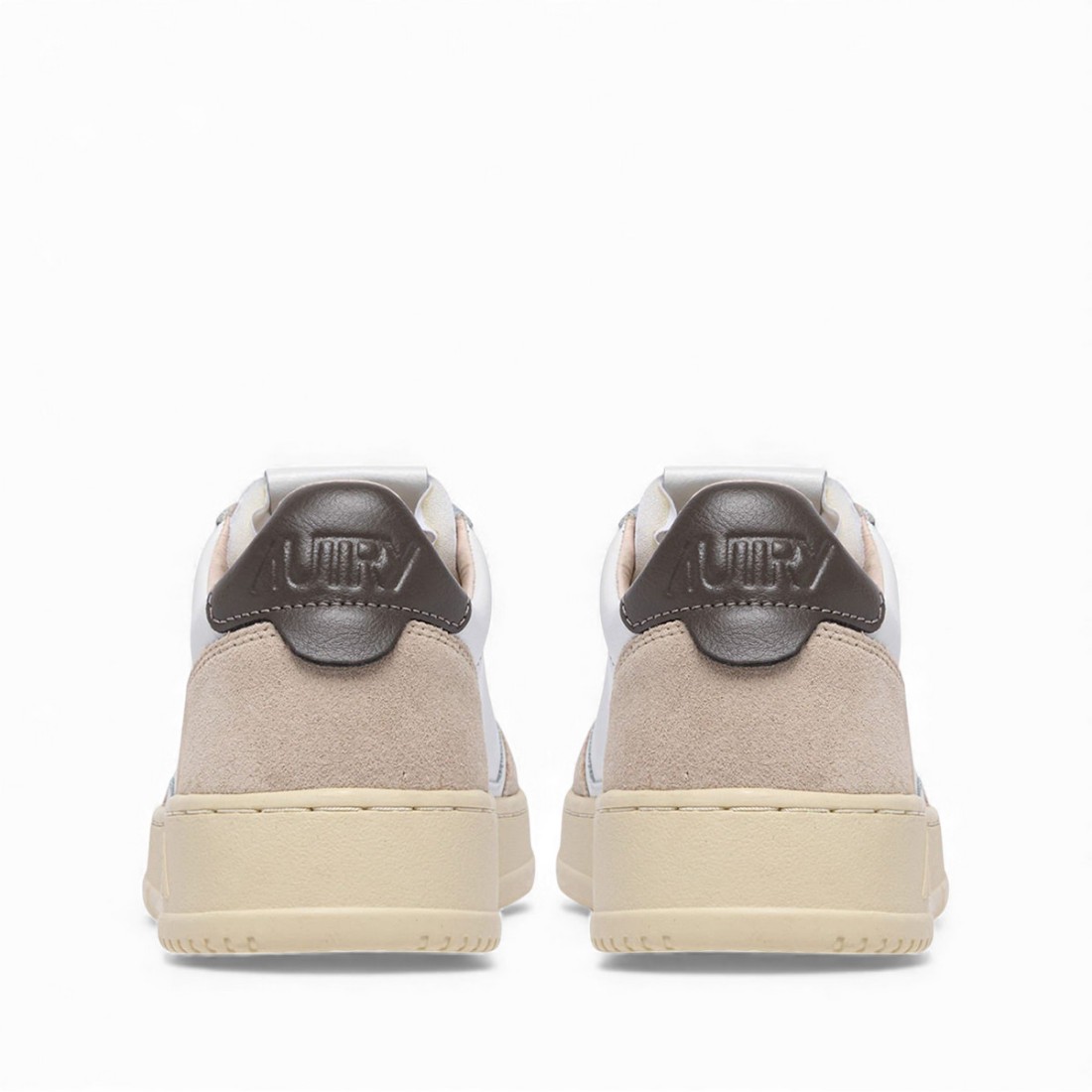 Tennisinspiration der 80er Jahre und moderne Proportionen: Die Autry Medalist für Herren sind ein zeitloser Klassiker. Sie sind aus weichem weißem Leder gefertigt und zeichnen sich durch beigefarbene Wildlederverstärkungen und einen braunen Logoabsatz aus, der ihnen Charakter verleiht. Der gepolsterte Kragen, das Futter aus Baumwollfrottee und die 2 cm hohe Einlegesohle sorgen für absoluten Komfort. Die perforierte Zehenkappe und die Gummisohle runden den Look ab. Perfekt für ein lässiges und anspruchsvolles Outfit.