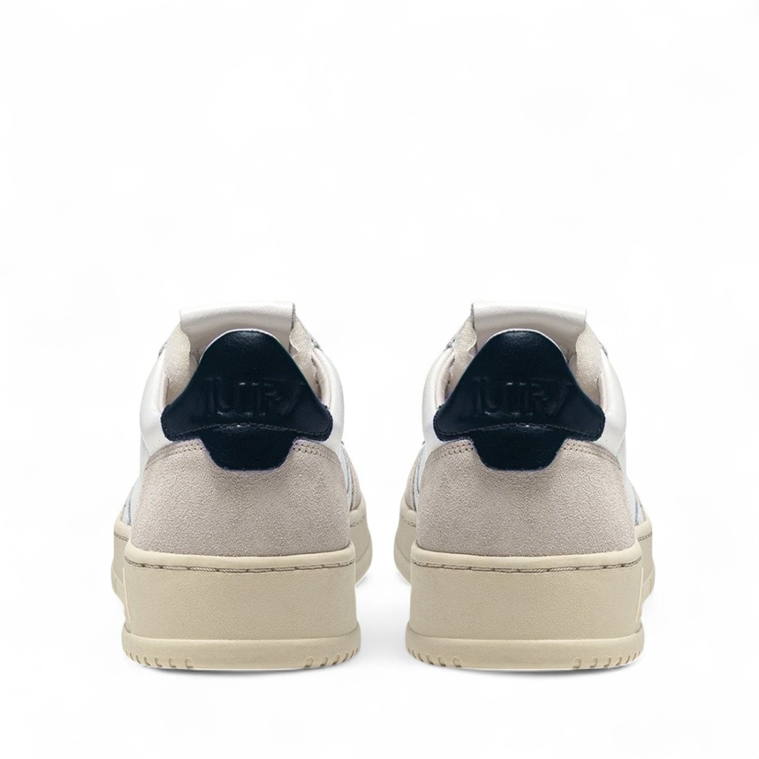 Medalist Autry Turnschuhe, eine moderne Neuinterpretation des kultigen Tennisstils der 1980er Jahre. Er ist aus weichem weißem Leder mit beigen Wildledereinsätzen gefertigt und vereint Komfort und Charakter. Das blaue Lederdetail an der Ferse mit dem Autry-Logo verleiht ihm einen unverwechselbaren Touch. Das Futter aus Leder und Baumwollfrottee, die erhöhte Innensohle und die Gummisohle sorgen für Komfort und Haltbarkeit.