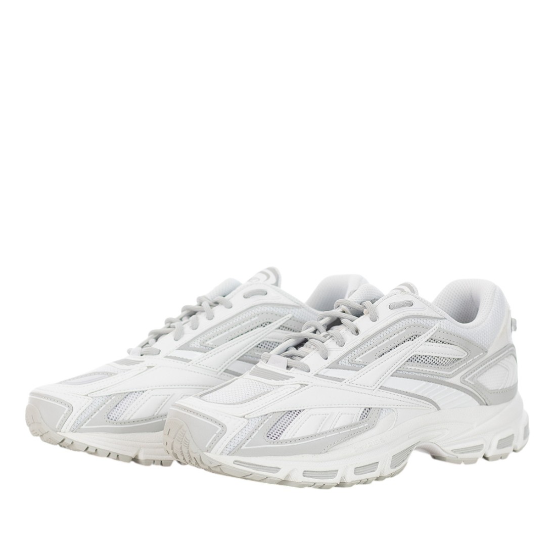 Turnschuhe Reebok Premier Road Ultra mit klarem und modernem Design, aus atmungsaktivem weißem Mesh mit Ton-in-Ton-Einsätzen aus Kunstleder und glänzenden Gummidetails. Das Logo auf der Zunge und der Rückseite sorgt für einen unverwechselbaren Touch. Innen mit Stoff gefüttert für maximalen Komfort, während die Gummisohle mit DMXride-Technologie für Dämpfung und Stabilität bei jedem Schritt sorgt.