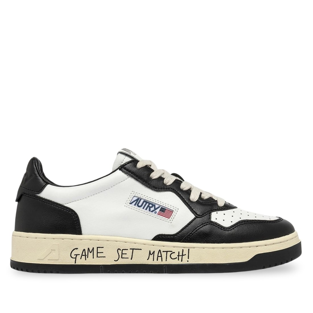 Der Medalist Autry erinnert an die Anziehungskraft des Tennissports der 1980er Jahre mit einer essentiellen und modernen Ästhetik. Er ist perfekt für den Alltag und verbindet Komfort mit zeitlosem Stil. Der "Game Set Match!"-Schriftzug auf der Sohle verleiht dem Look Charakter und Energie. Obermaterial aus weißem Leder mit schwarzen Ledereinsätzen, perforierte Spitze, Baumwollschnürsenkel, bestickte Zunge, gepolsterter Kragen, Innenfutter aus Leder und Frottee, 2 cm hohe Innensohle und Gummisohle.Unser Kundenservice steht Ihnen von Montag bis Samstag von 10:00 bis 19:30 Uhr zur Verfügung