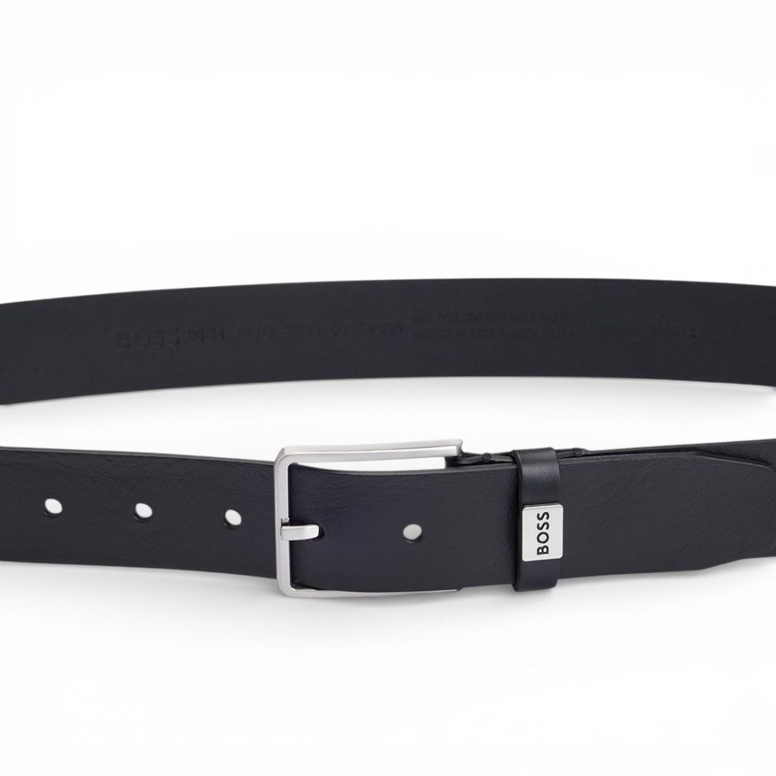 Entdecken Sie den eleganten und vielseitigen BOSS Elio Gürtel, 3,5 cm hoch und aus feinem schwarzen italienischen Leder. Die Schlaufe ist mit dem Metall-Logo verziert, während die gravierte Schnalle und die gebürsteten Silberdetails einen raffinierten Look vervollständigen, der jedes Outfit mit Stil und Klasse aufwertet.Unser Kundenservice steht Ihnen von Montag bis Samstag von 10:00 bis 19:30 Uhr zur Verfügung