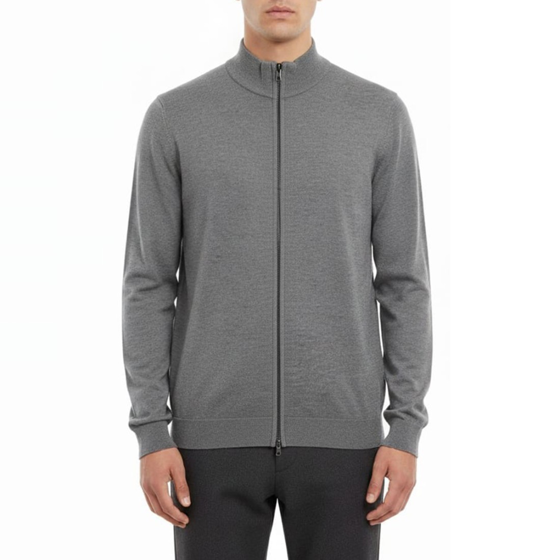 Bottega Cinque Strickjacke mit Reißverschluss aus grauem Wollgemisch, hergestellt aus Polyester, Nylon, Acryl und Merinowolle für Komfort und Haltbarkeit. Sie verfügt über einen halben Kragen, einen doppelten Reißverschluss mit Schieberegler und elastische Abschlüsse an den Ärmeln und am Saum. Normale Passform, ideal für einen lässigen und raffinierten Look an kühleren Tagen.Unser Kundenservice steht Ihnen von Montag bis Samstag von 10:00 bis 19:30 Uhr zur Verfügung