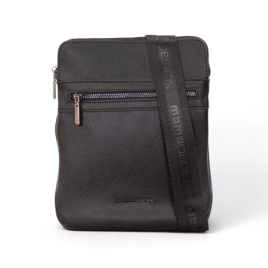 Verstellbare Umhängetasche aus elegantem Saffiano-Kunstleder, ideal für einen raffinierten und praktischen Look. Ausgestattet mit einem zentralen Hauptfach und zwei zusätzlichen Taschen mit Reißverschlüssen auf beiden Seiten bietet sie Platz und Organisation, ohne auf Stil zu verzichten. Perfekt für jede Gelegenheit. Abmessungen: 21 B x 25 H x 1 T.