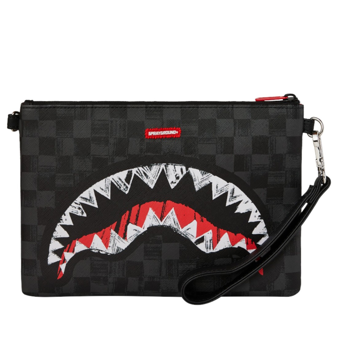 Clutch Sprayground Graffiti Check Shark Crossbody: raffinierter Streetstyle mit schwarzem Karodruck und kultigem Haifischmaul mit Graffiti-Effekt. Kompakt, leicht und vielseitig, kann sie in der Hand oder über der Schulter getragen werden. Perfekt für urbane Outfits, Events oder den täglichen Gebrauch. Ein Must-have für alle, die gerne auffallen.