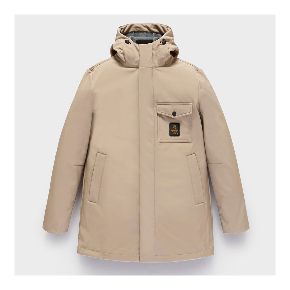 Winterjacke für Herren mit technischem und essentiellem Design, perfekt, um der städtischen Kälte mit Komfort und Funktionalität zu begegnen. Sie besteht aus zweilagigem Bi-Stretch-Softshell mit interner Membran und bietet dank ihrer wasserdichten, winddichten und atmungsaktiven Eigenschaften umfassenden Schutz. Leicht und dennoch schützend, mit verstellbarer Kapuze und Zwei-Wege-Reißverschluss, ist sie ein vielseitiges und leistungsstarkes Kleidungsstück für die Wintersaison.