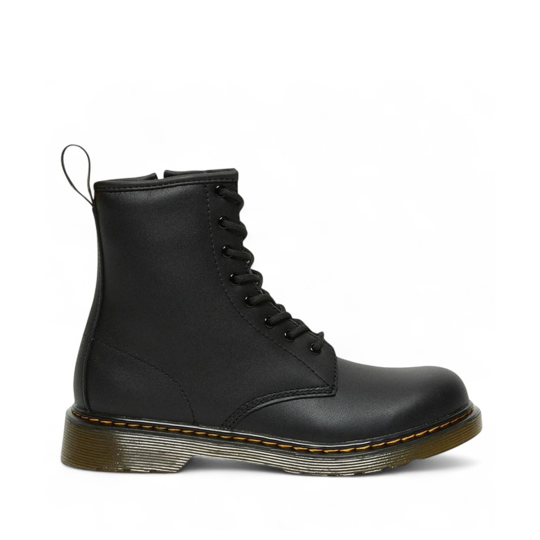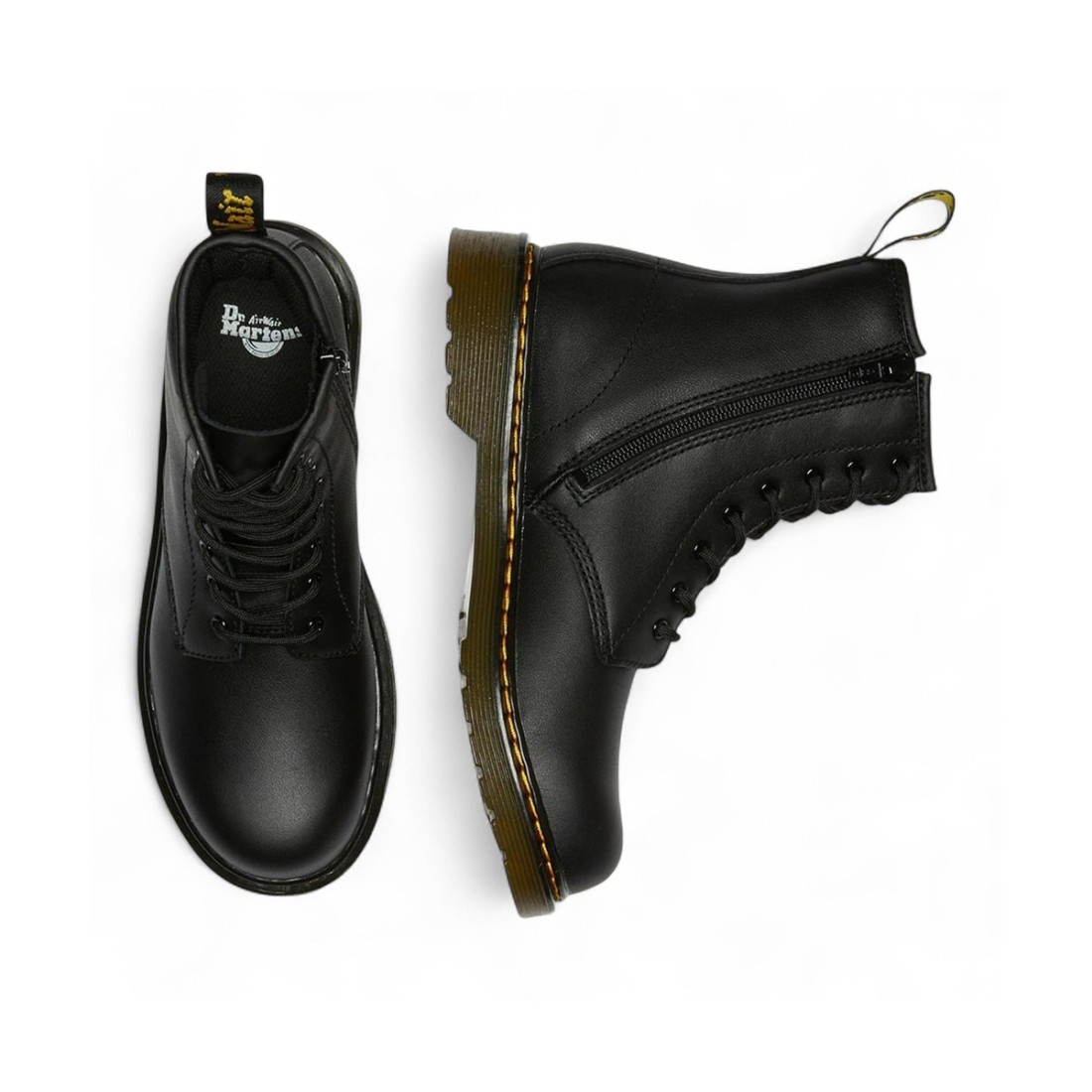 Eine reduzierte Version der Stiefelette 1460, ideal für kleine Rebellen, die viel unterwegs sind. Sie sind aus weichem und strapazierfähigem Softy T-Leder gefertigt und bieten dank ihrer leichten Sohle und dem seitlichen Reißverschluss zum einfachen Anziehen Komfort und Flexibilität. Ikonisches Design im Kinderformat, perfekt, um wachsende Füße mit Stil und Zweckmäßigkeit zu begleiten. Das feinkörnige und seidige Softy T-Leder garantiert Qualität und Langlebigkeit.