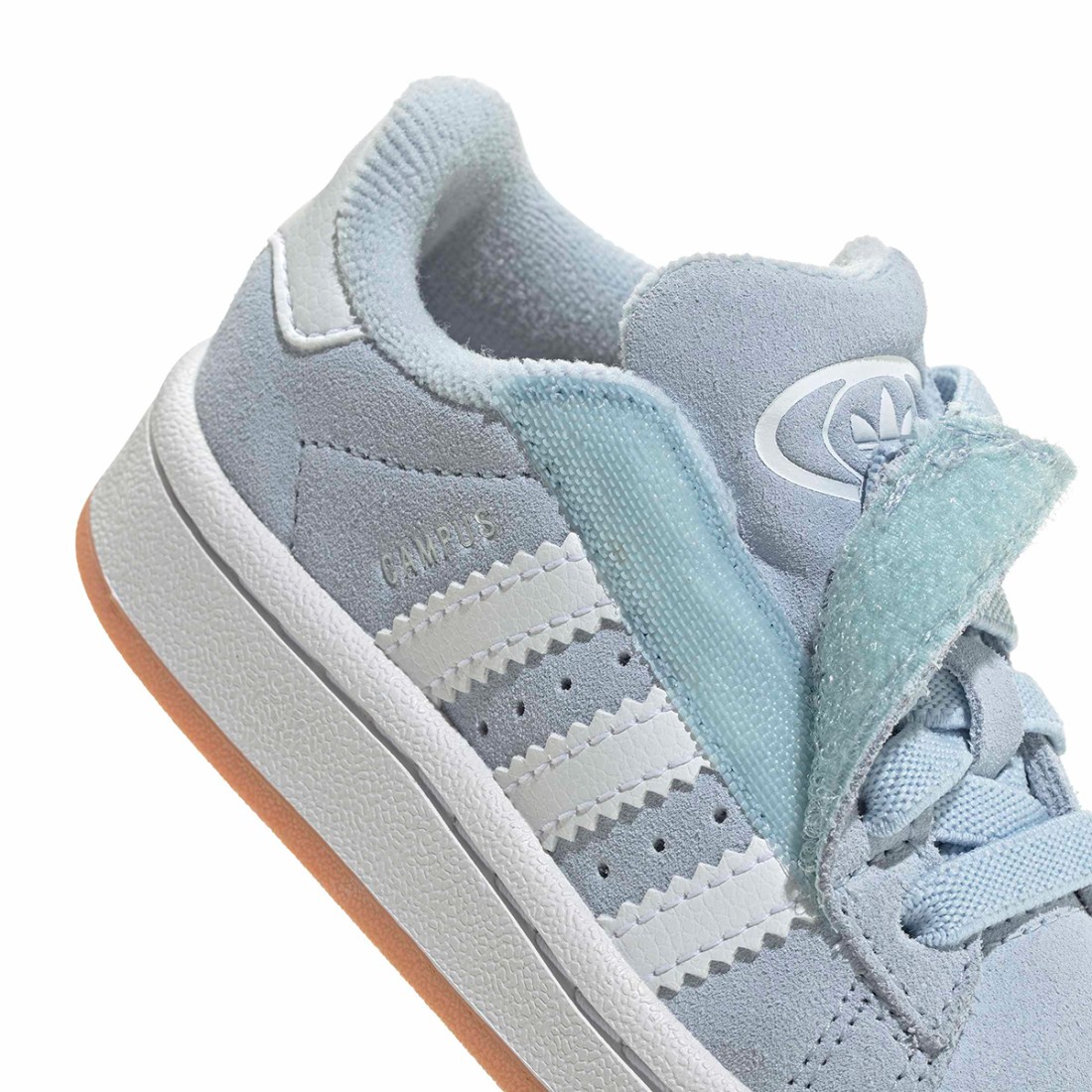 Die Adidas Originals Campus 00s für die Kleinsten verleihen jedem Outfit einen unwiderstehlichen Touch. Dank der elastischen Schnürsenkel und des praktischen Riemenverschlusses sind sie leicht zu tragen und garantieren einen stabilen und bequemen Sitz. Das hellblaue Obermaterial aus Wildleder und Leder ist weich und strapazierfähig und mit Stoff gefüttert. Die gebogene Gummisohle begleitet die ersten Schritte sicher.Unser Kundenservice steht Ihnen von Montag bis Samstag von 10:00 bis 19:30 Uhr zur Verfügung