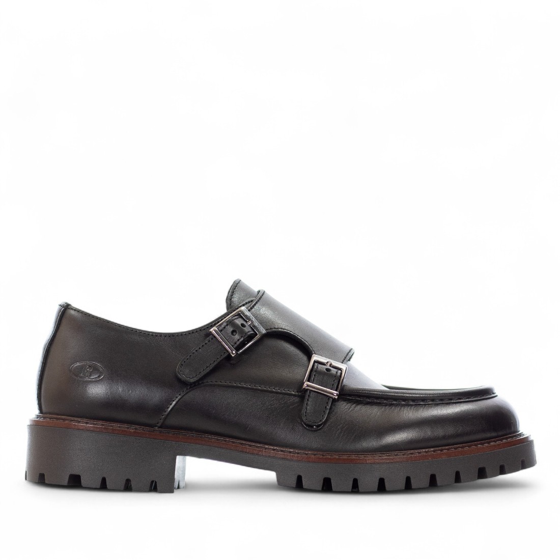 Herrenmokassin von Rogal aus schwarzem Leder, mit doppelter Schnalle vorne und 30 mm hoher Gummisohle. Das Futter und die Innensohle, beide aus Leder, sorgen für Komfort und Atmungsaktivität. Dieses elegante und charakterstarke Modell zeichnet sich durch seine Liebe zum Detail und das seitlich eingeprägte Logo aus, ein Symbol für Stil und Qualität.