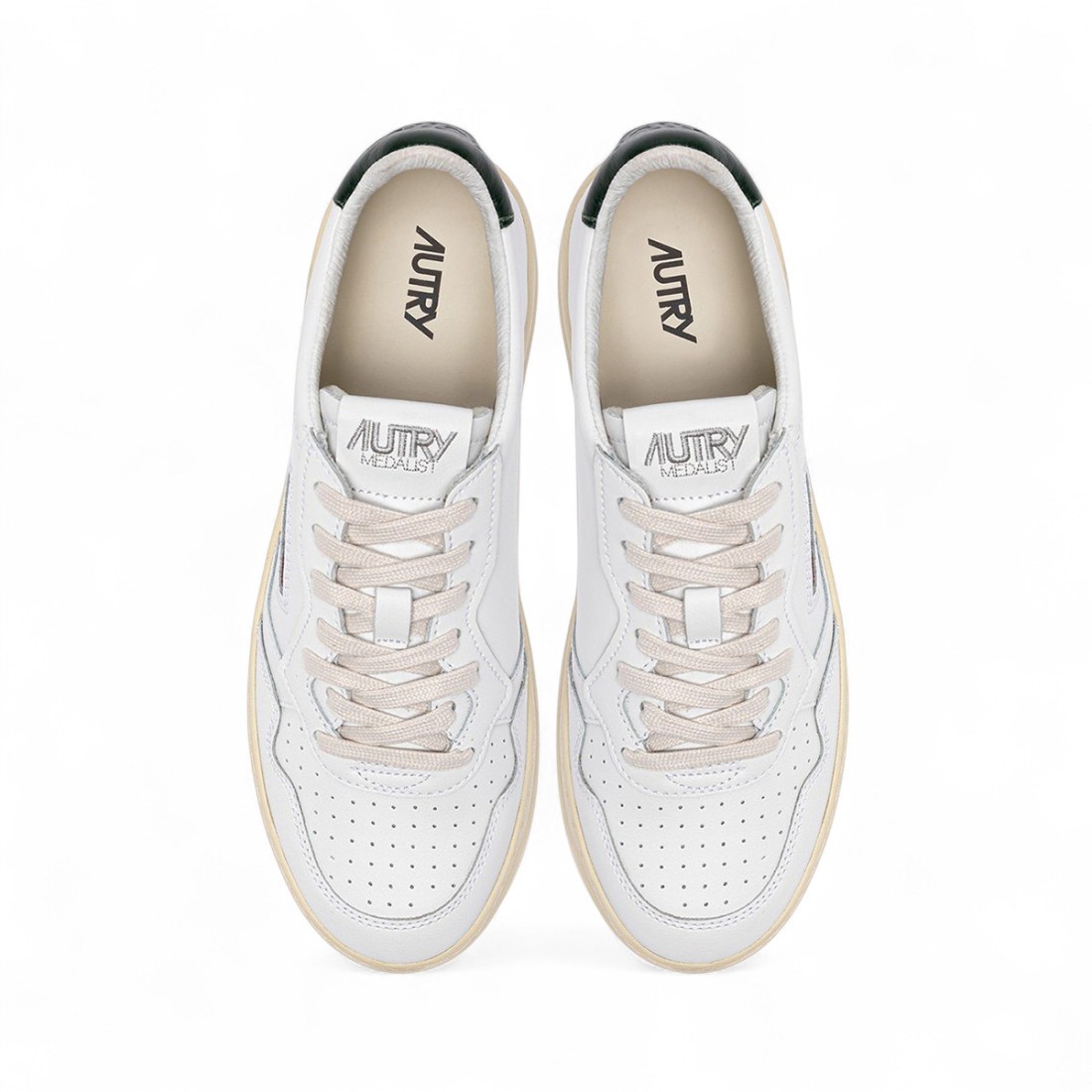 Die Autry Medalist Turnschuhe aus weißem Leder sind vom Tennissport der 1980er Jahre inspiriert und kombinieren dynamisches Design und hochwertige Materialien zu einem vielseitigen und bequemen Stil. Perforierte Zehenpartie für Atmungsaktivität, grünes Lederlogo, Futter aus Leder und Baumwolle, erhöhte Innensohle und Gummisohle. Perfekt für lässige und sportliche Looks mit einem unverwechselbaren Retro-Touch.Unser Kundenservice steht Ihnen von Montag bis Samstag von 10:00 bis 19:30 Uhr zur Verfügung
