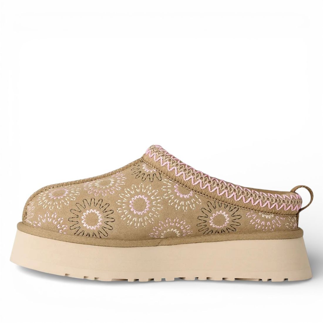 Der Tazz Sun Stitch interpretiert den klassischen Plateauslipper Tazz II neu, indem er einen sonnigen Touch hinzufügt: das Sonnenlogo, das auf das weiche, senffarbene Wildlederobermaterial gestickt ist. Das Futter und die Innensohle aus Schaffell umhüllen den Fuß mit Komfort, während die leichte EVA-Sohle aus Zuckerrohr für Stabilität sorgt. Perfekt für zu Hause und zum Entspannen im Freien.Unser Kundenservice steht Ihnen von Montag bis Samstag von 10:00 bis 19:30 Uhr zur Verfügung