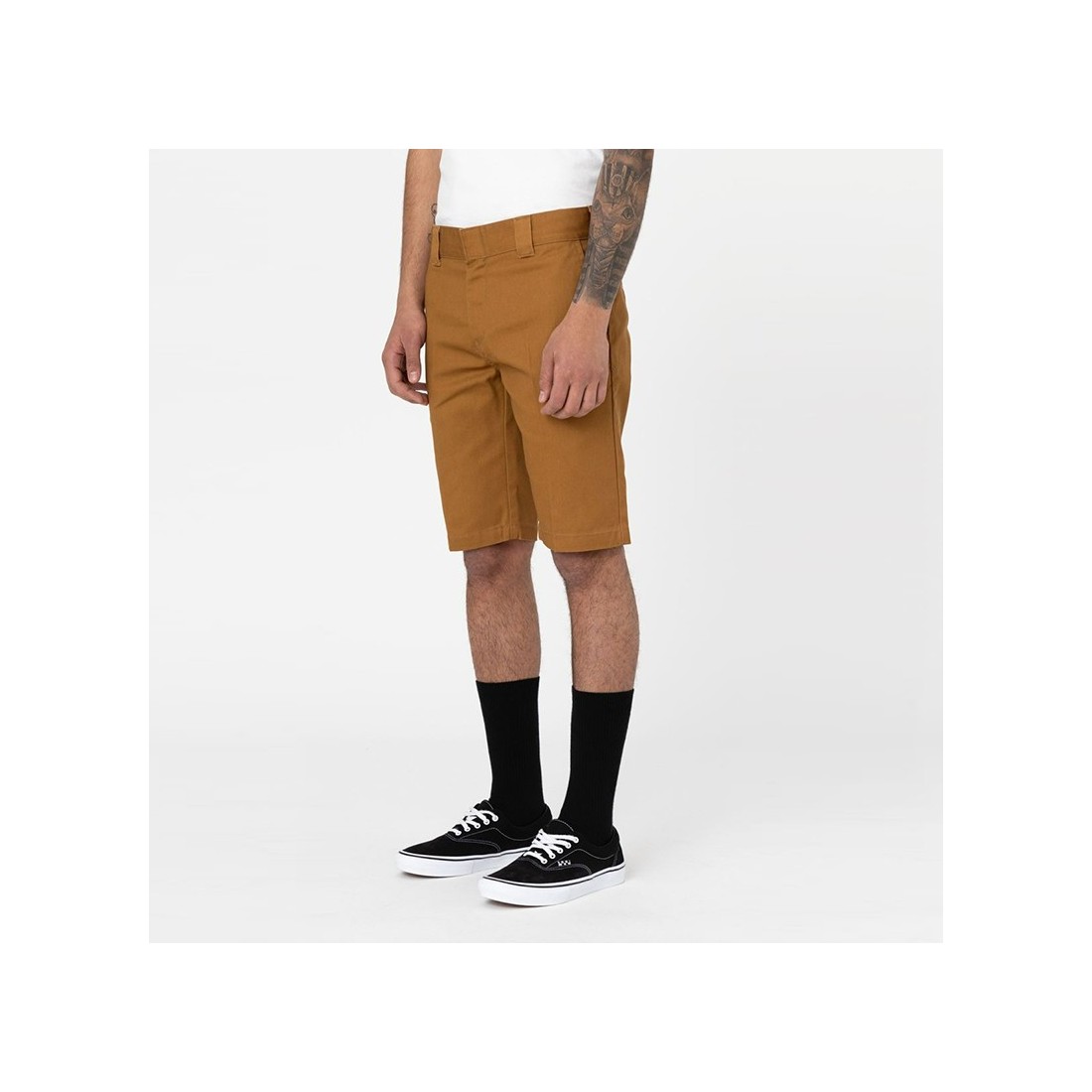 DICKIES - Shorts aus recyceltem Polyester und brauner Baumwolle mit "Dickies" Logoaufnäher auf dem Rücken. Schräge Taschen an den Seiten und doppelte Gesäßtasche. Normale knielange Passform. Artikel: DK0A4XNFBD01 CAMEL