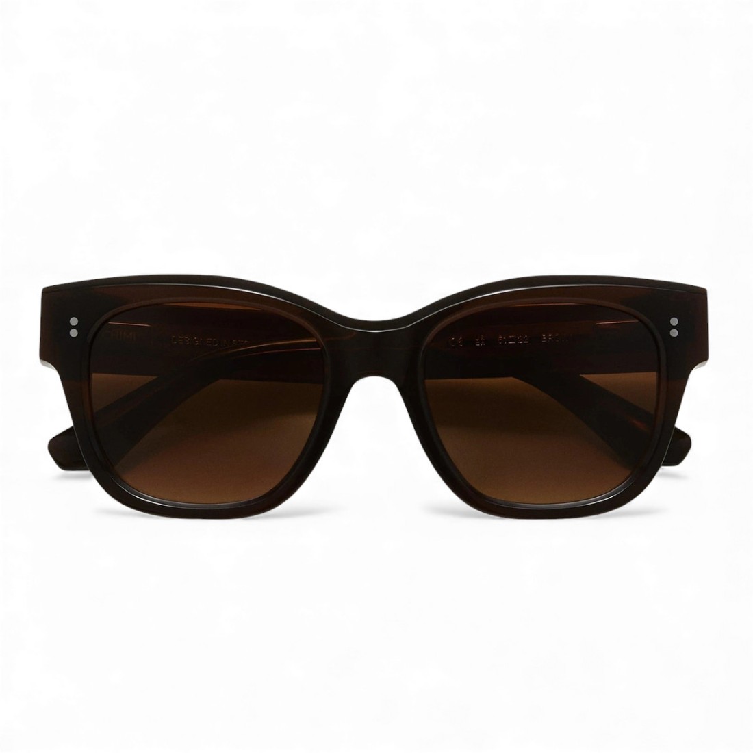 Brillenmodell 07, ein raffinierter Schmetterling mit starker Ausstrahlung. Die übergroßen CR39-Gläser bieten einen kühnen Look und vollen UV-Schutz. Der handgefertigte Rahmen aus braunem Acetate Renew™ mit einem CHIMI-Metallkern kombiniert biobasierte und recycelte Materialien. Kratzfeste, bruchsichere und verzerrungsarme braune Gläser für scharfe Sicht und weniger Blendung.