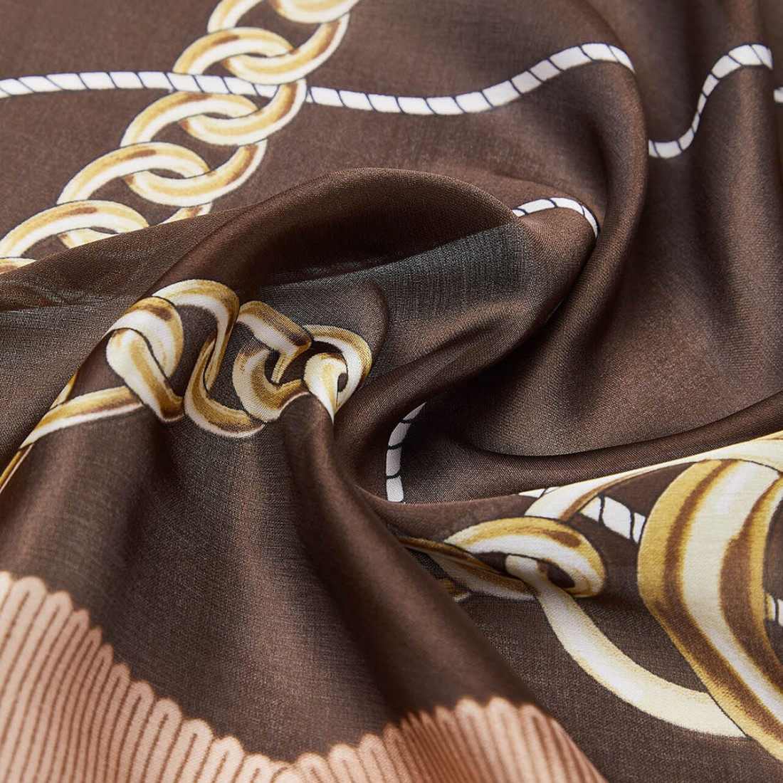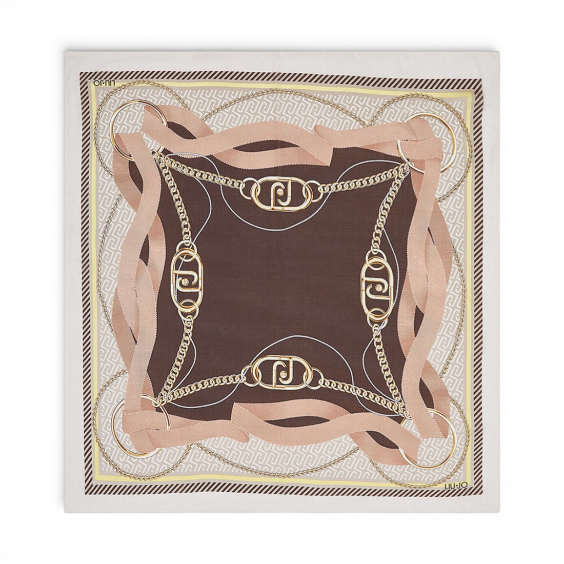 Quadratischer Schal 120x120 cm aus natürlichem beigem recyceltem Polyestergarn, leicht und angenehm im Griff. Der Bandaufdruck verleiht ihm Bewegung und Charakter und macht ihn zu einem vielseitigen Accessoire, das jeden Look vervollständigt. Perfekt, um ihn um den Hals, im Haar oder an der Handtasche zu tragen, verleiht er einen Hauch von Stil mit besonderer Aufmerksamkeit für die Auswahl der Materialien.Unser Kundenservice steht Ihnen von Montag bis Samstag von 10:00 bis 19:30 Uhr zur Verfügung