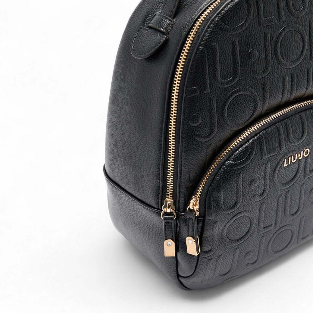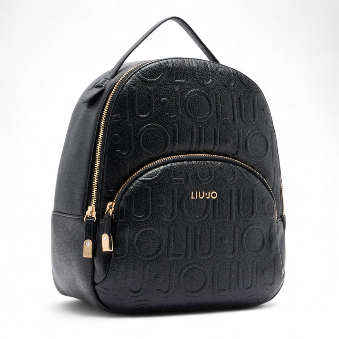 LIU JO backpack in black tumbled faux leather, elegant and practical for any occasion. Featuring a zippered closure, embossed logo and metal detail, it offers one front zippered pocket and one inside pocket for maximum organization. Compact size 26x13x30 cm and adjustable shoulder straps for perfect comfort throughout the day.Our customer service is available Monday through Saturday from 10:00 AM to 7:30 PM