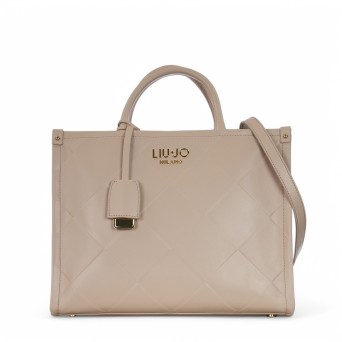 LIU JO - Faux leather shoulder bag with all over monogram logo