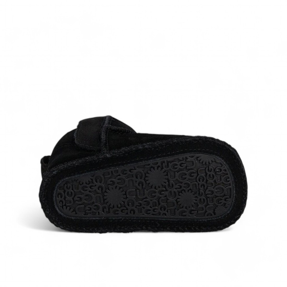 UGG - Black suede crib ankle boots with side Velcro for easy on-and-off fit and logo patch sewn on back. UGGplush™ lining and insole made with regenerated wool (60%) and TENCEL™ lyocell (40%). Rubber bottom.Our customer service is available Monday through Saturday from 10:00 AM to 7:30 PM