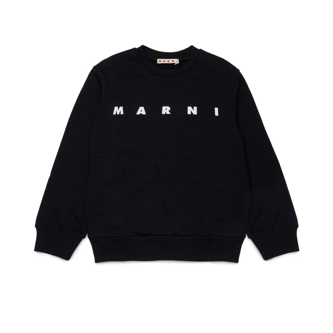 Unisex child's MARNI crewneck sweatshirt made of 100% black cotton. Contrasting lettering logo on the front gives an iconic and recognizable touch. Comfortable and versatile, it is perfect for school and leisure. Ribbed cuffs and hem, regular fit. Unisex model designed to accompany little ones every day.*Item from the children's collection, also wearable by women.